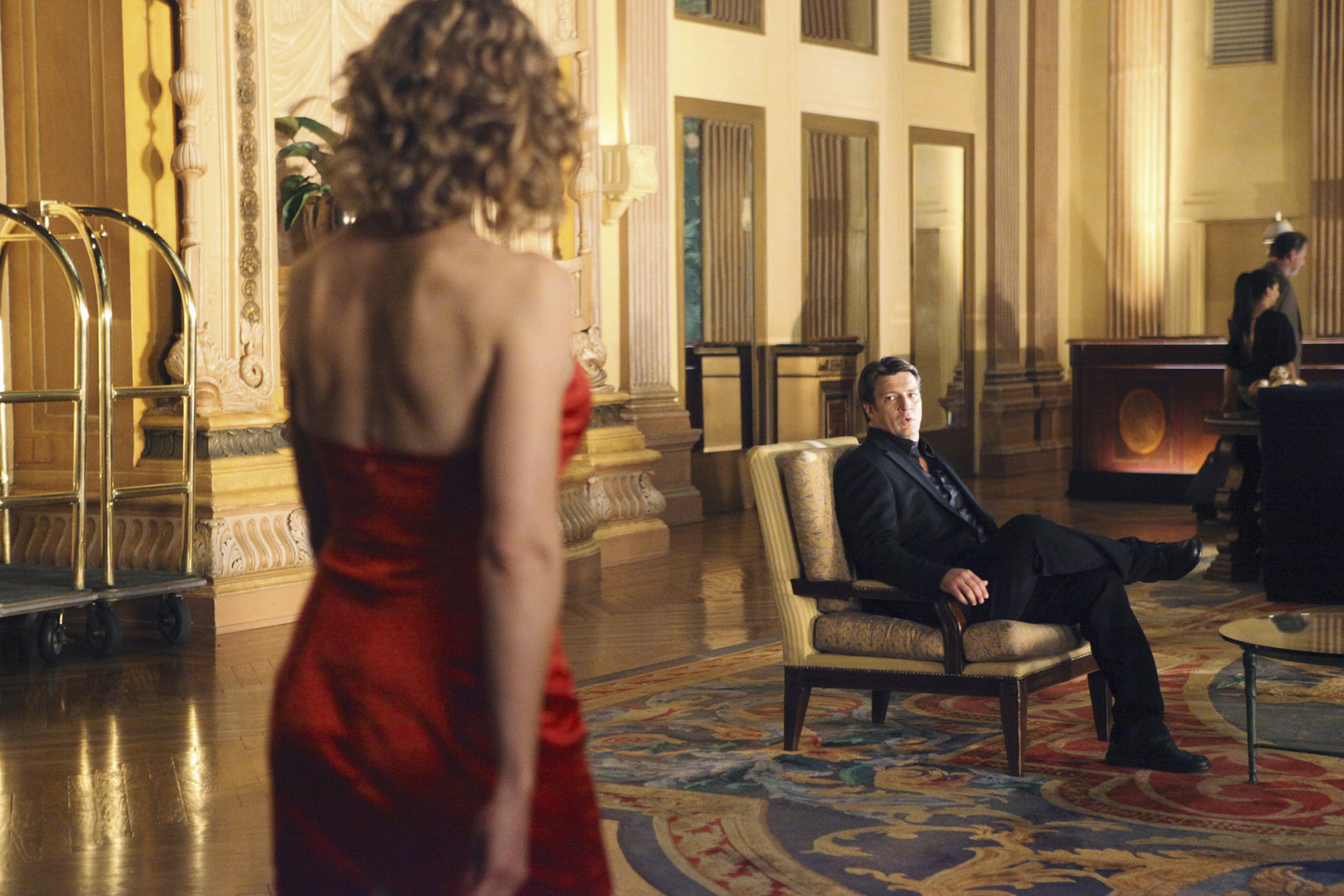 Reich und totKate (Stana Katic, l.) kann Richard Castles (Nathan Fillion, r.) plötzliche Aufregung nicht nachvollziehen ...Bild: © Universal TV