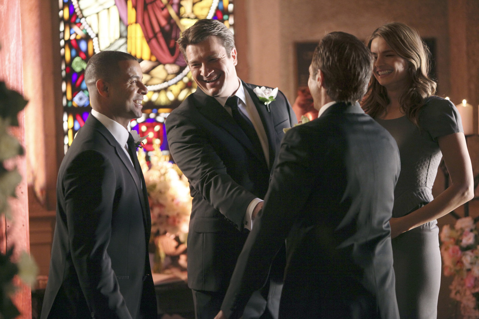 Dein Geheimnis ist bei mir sicherRichard Castle (Nathan Fillion, 2.v.r.)Bild: © Universal TV