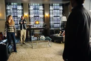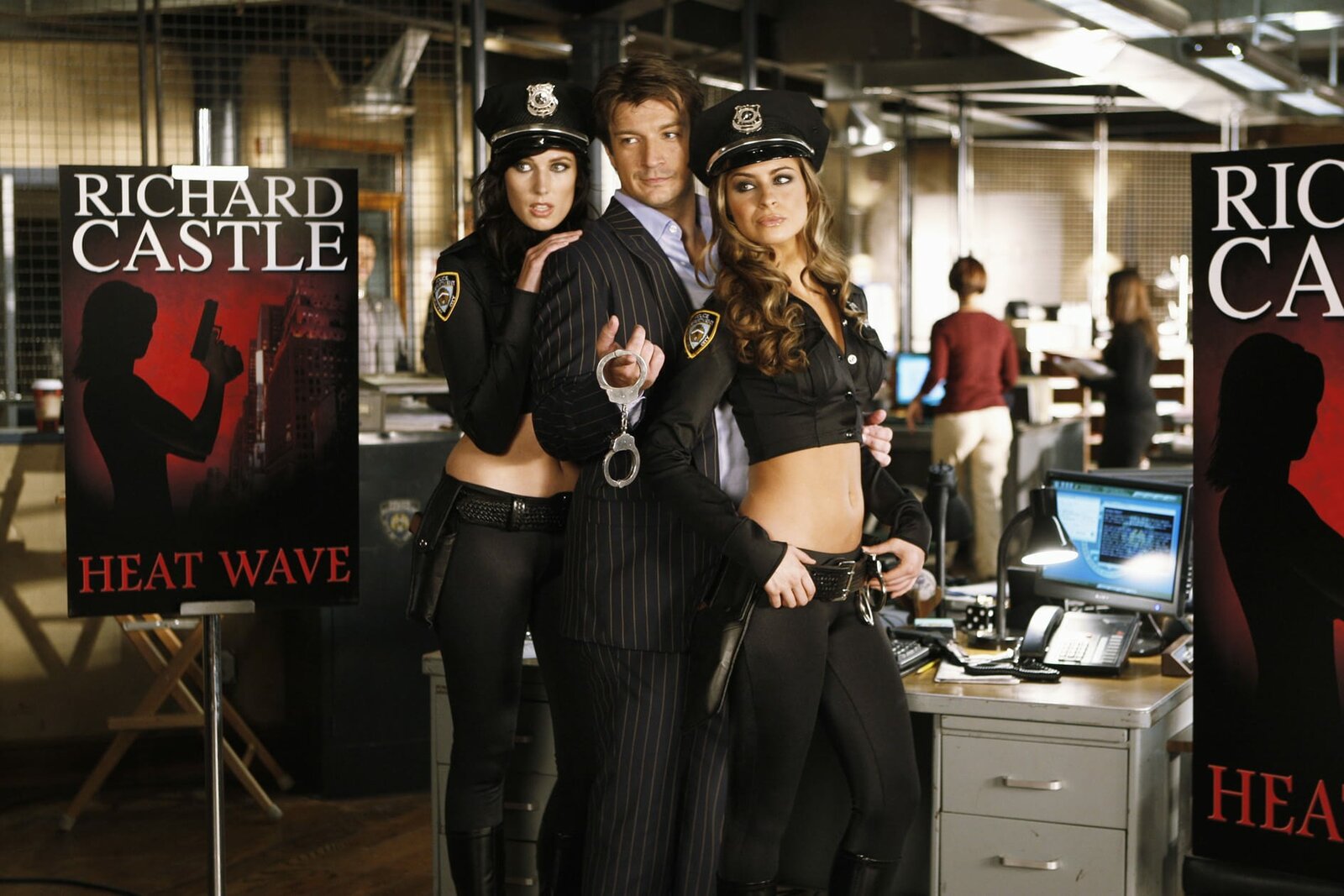 Schlechter EinflussL-R stehen: Kate Beckett (Stana Katic) und Richard Castle (Nathan Fillion). Auf dem Boden: Holly Rhodes (Briana Barran)Bild: © Universal TV