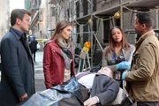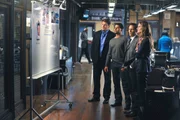 Tanz mit dem TodWährend eines großen Tanzwettbewerbes wird eine Kandidatin ermordet in der Kabine aufgefunden. Kevin Ryan (Seamus Dever, 2.v.r.) und Javier Esposito (Jon Huertas, r.) befragen die anderen Kandidaten Santino (Krishna Cole, l.) und Jeanine (Anna Lunberry, 2.v.r.) ...Bild: © ProSieben Media AG " quelltext=