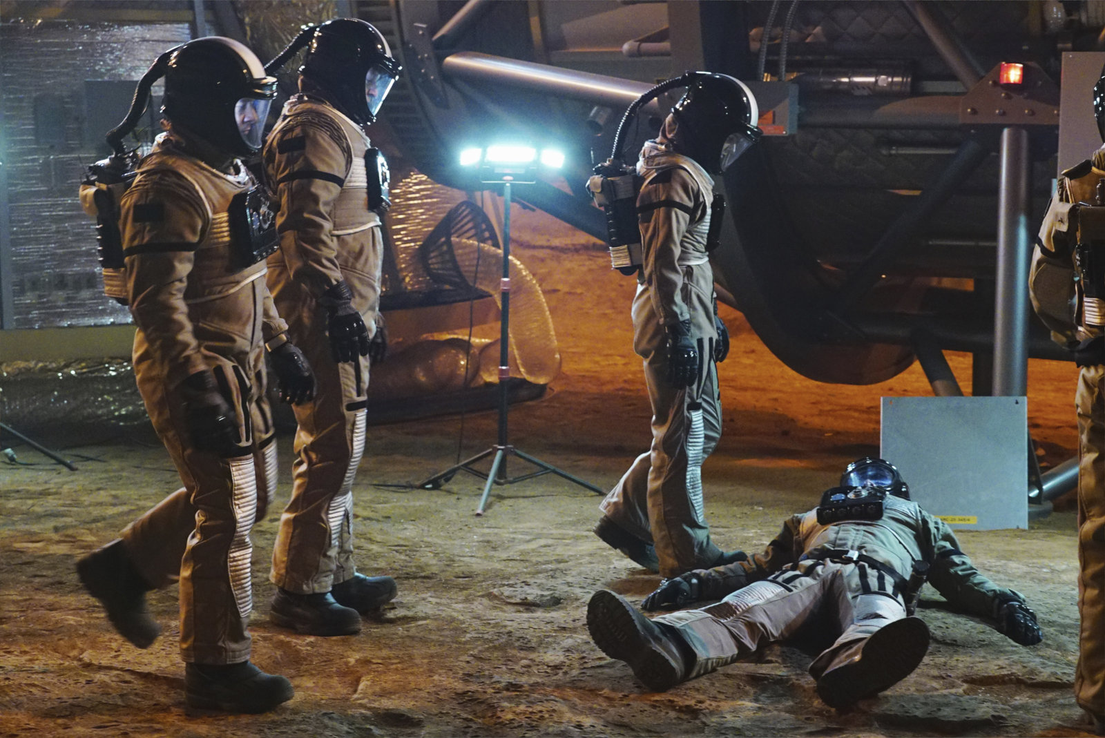 Mord auf dem MarsStuff" - When an astronaut training for a trip to Mars is mysteriously killed inside a Mars simulation, Castle and Beckett don spacesuits to investigate. But when they discover no one inside the sealed simulation could have committed the murder and no one from the outside could get in, the case takes a shocking turn, on "Castle," MONDAY, FEBRUARY 23 (10:01-11:00 p.m., ET) on the ABC Television Network. (ABC/Richard Cartwright) JON HUERTAS, NATHAN FILLION, STANA KATICBild: © Universal Channel
