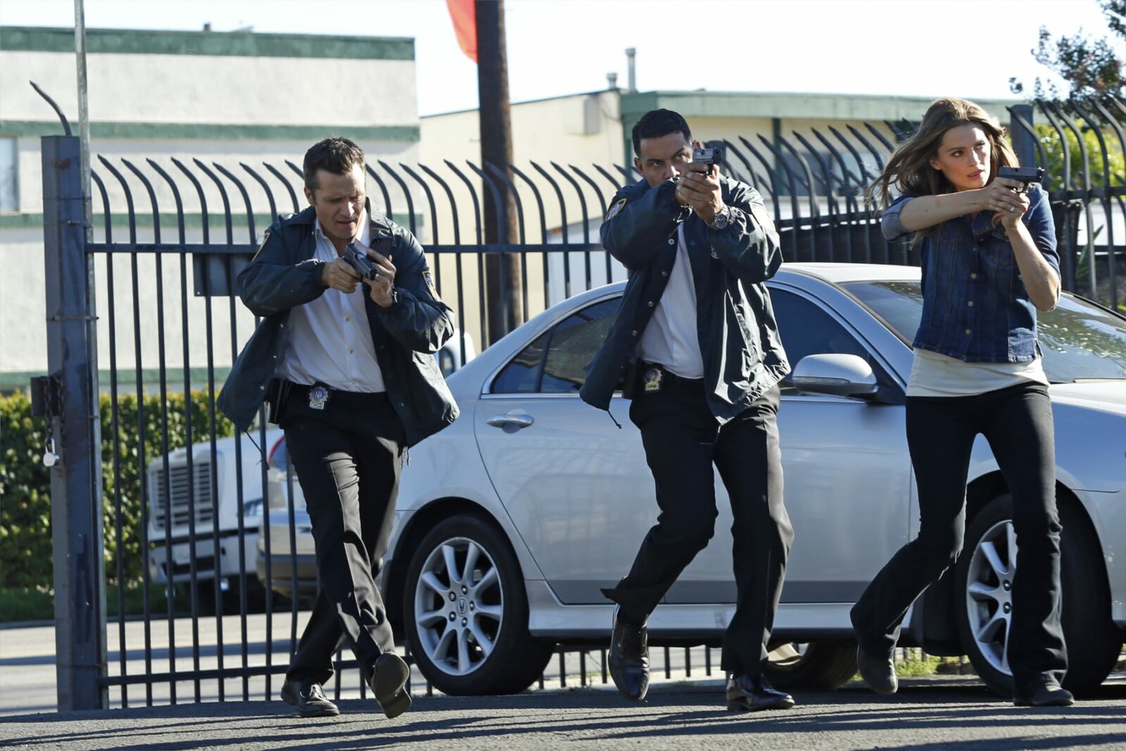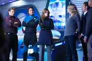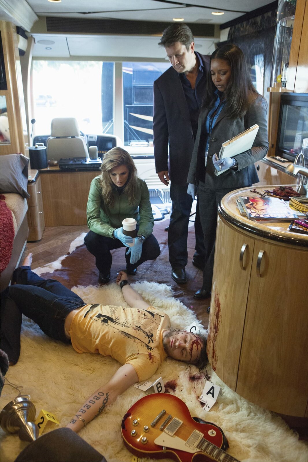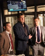 Der ermordete FernsehstarDer Nachfolger von Beckett, Sully (Joshua Bitton, l.), weiß genau, dass Castle (Nathan Fillion, M.) an Tatorten nichts mehr zu suchen hat. Kevin Ryan (Seamus Dever, r.) stärkt dem Krimiautor jedoch den Rücken ...Bild: © ABC Studios Lizenzbild frei