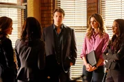 Der ermordete FernsehstarCASTLE - "Need To Know" - With Beckett still in D.C., Castle and the boys investigate the murder of former child star Charlie Reynolds, who rose to fame playing the lovable nerd on an early 90s High School sitcom. But the case takes a turn for the strange when Agents Beckett and McCord arrive from Washington to take over the investigation, creating competitive tension in the precinct. But why would a washed-up actor's death warrant Federal scrutiny? Whatever the reason, Beckett and McCord aren't telling. Meanwhile, Castle has to contend with a new face at the 12th, NYPD Detective Frank "Sully" Sullivan (Joshua Bitton, "The Pacific"). Antonio Sabato, Jr. ("Melrose Place," "General Hospital") guest stars as Ramon Russo, the victim's former sitcom costar, on "Castle," MONDAY, OCTOBER 7 (10:01-11:00 p.m., ET) on the ABC Television Network. (ABC/Richard Cartwright) LISA EDELSTEIN, STANA KATIC, NATHAN FILLION, SEAMUS DEVER, JON HUERTASBild: © Universal TV