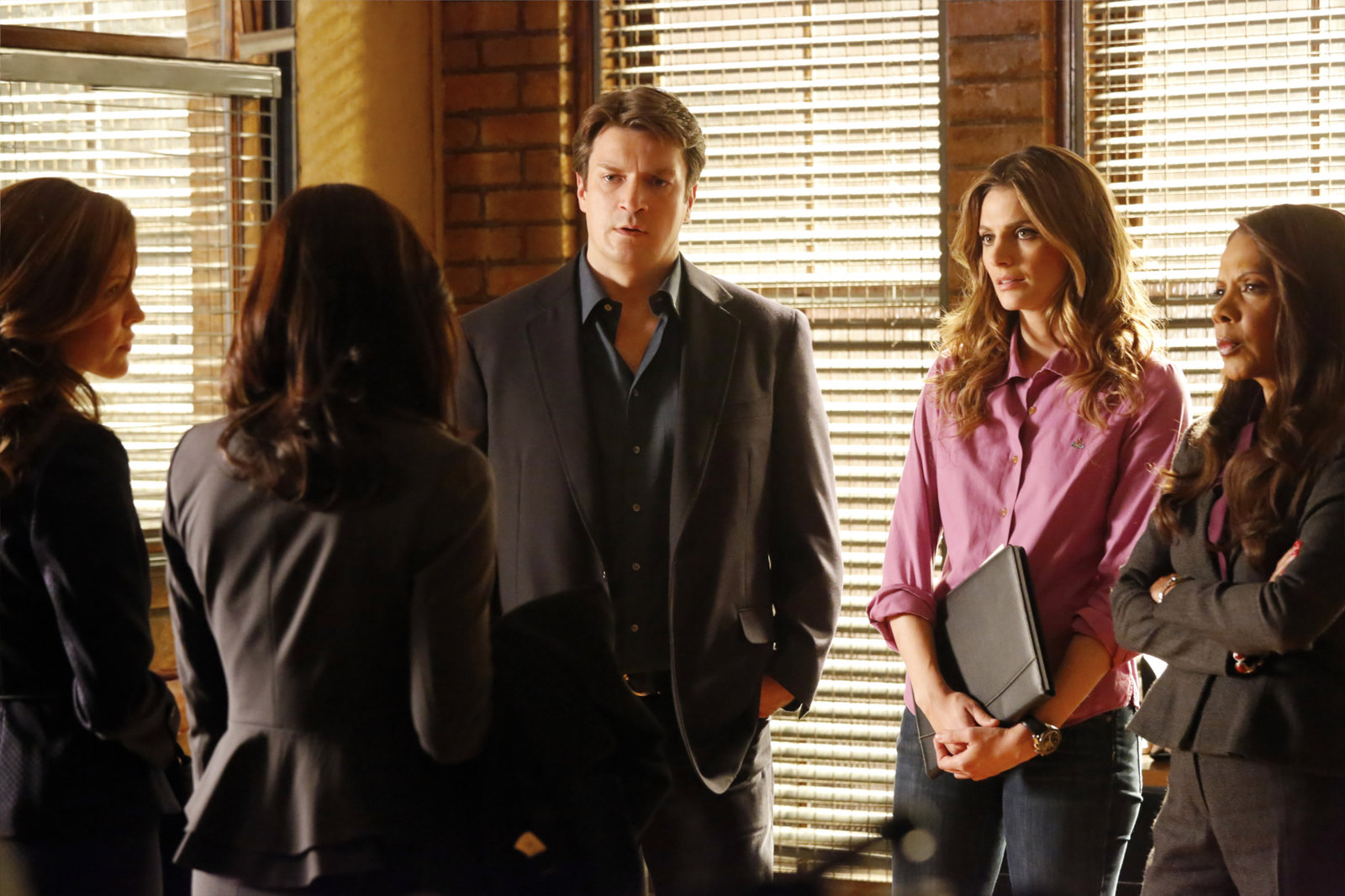 Der Zweck heiligt die MittelGood" - Castle and Beckett investigate the murder of a Wall Street trader, but the case takes a shocking turn when the they discover the victim was an undercover informant for the U.S. Attorney's office. To complicate matters further, the U.S. attorney involved is Elizabeth Weston (guest star Salli Richardson-Whitfield, "Eureka"), Captain Gates' estranged sister, on "Castle," MONDAY, MARCH 24 (10:01-11:00 p.m., ET) on the ABC Television Network. (ABC/Richard Cartwright) LAURIE FORTIER, SALLI RICHARDSON-WHITFIELD, NATHAN FILLION, STANA KATIC, PENNY JOHNSON JERALDBild: © Universal Channel