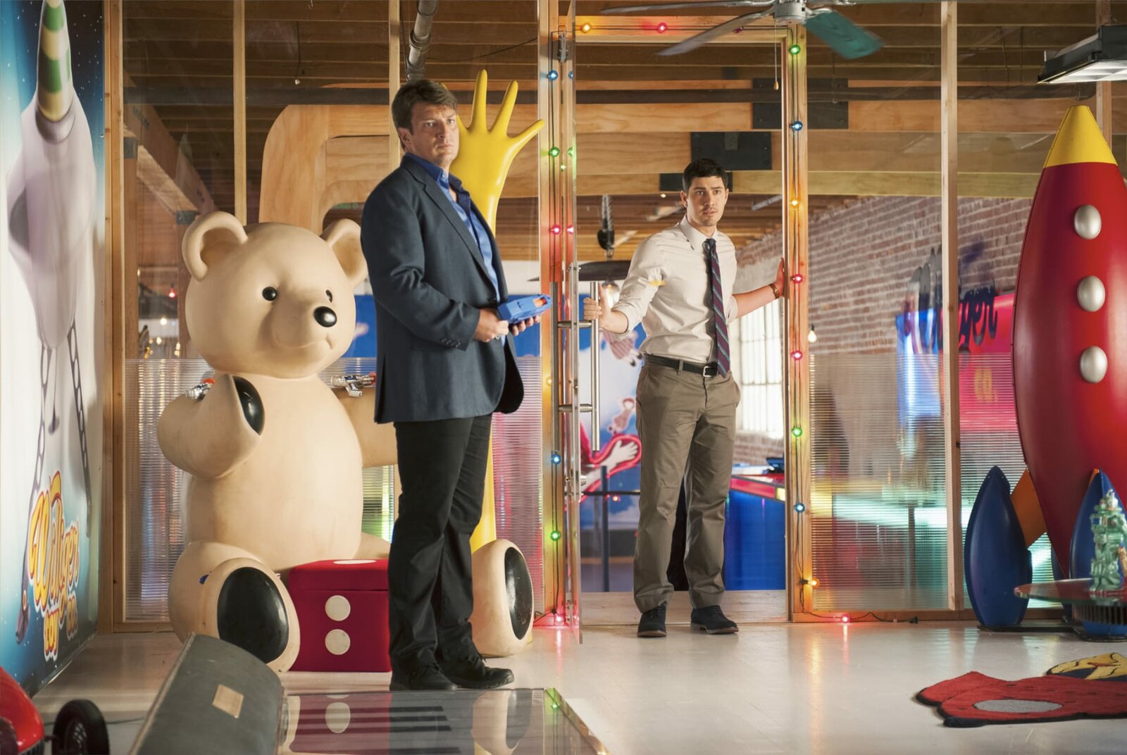 PuppenmordCASTLE - "Montreal" - While the team investigates the murder of a toy company CEO, Castle uncovers a lead to his mysterious disappearance, launching him into a dangerous investigation of his own, on "Castle," MONDAY, OCTOBER 6 (10:01-11:00 p.m., ET) on the ABC Television Network. (ABC/Colleen Hayes) NATHAN FILLION, BRIAN TICHNELLBild: © Universal TV