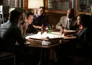 Der tote SpionAbschiedsparty: (v.l.n.r.) Richard Castle (Nathan Fillion), Kevin (Seamus Dever), Javier (Jon Huertas), Roy Montgomery (Ruben Santiago-Hudson) und Lanie (Tamala Jones) ...Bild: © Universal TV