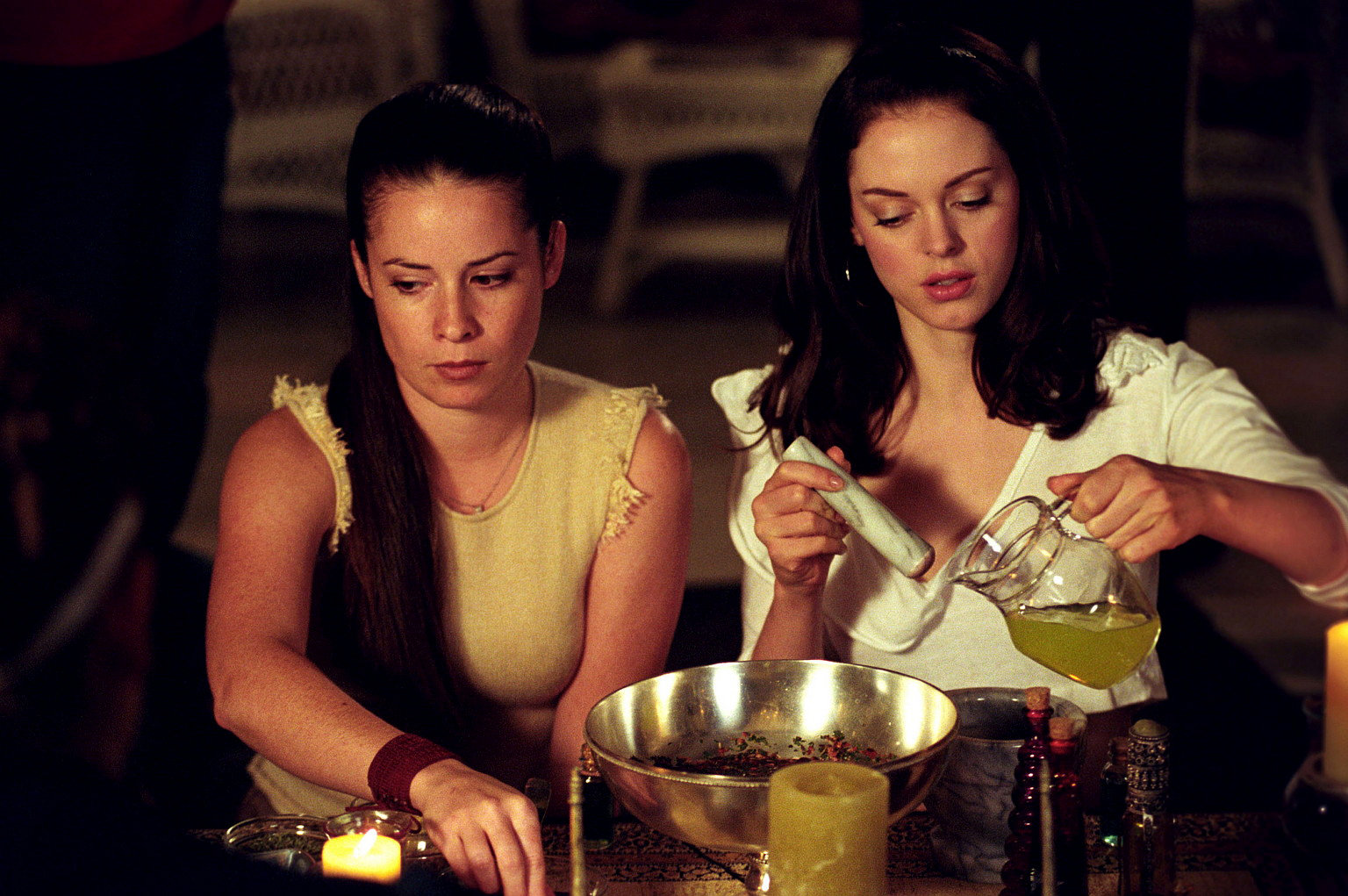 Der Ring der MusenUm etwas mehr über die Musen herauszufinden, forschen Piper (Holly Marie Combs, l.) und Paige (Rose McGowan, r.) im Buch der Schatten und brauen einen Trank.Bild: © Paramount Pictures