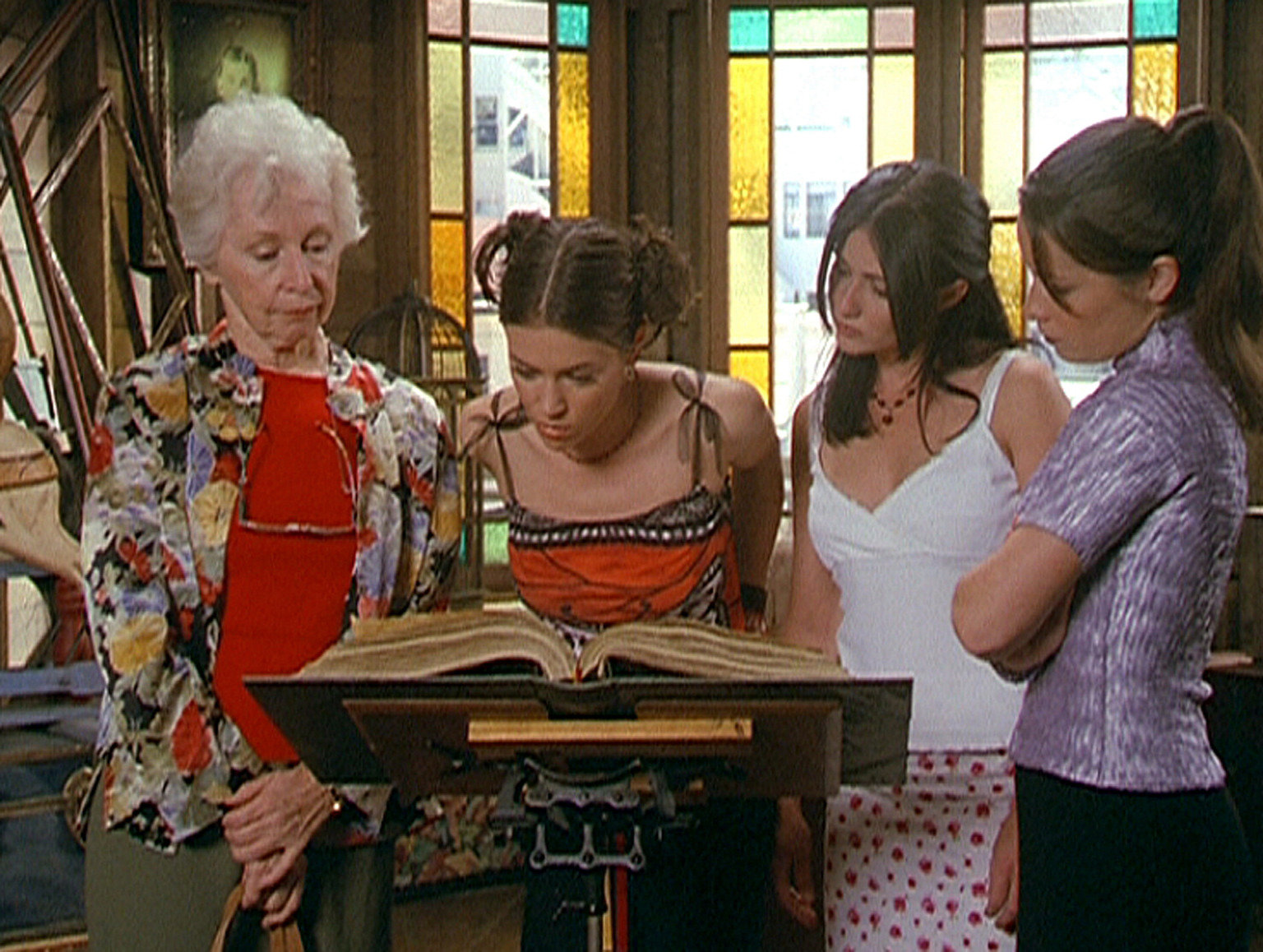 Ewige Jugend(v.l.n.r.) Tante Gail (Anne Haney) hat sich das Vertrauen der drei Halliwell-Schwestern Phoebe (Alyssa Milano), Prue (Shannen Doherty) und Piper (Holly Marie Combs) erschlichen.Bild: © ProSieben Media AG © Paramount Pictures
