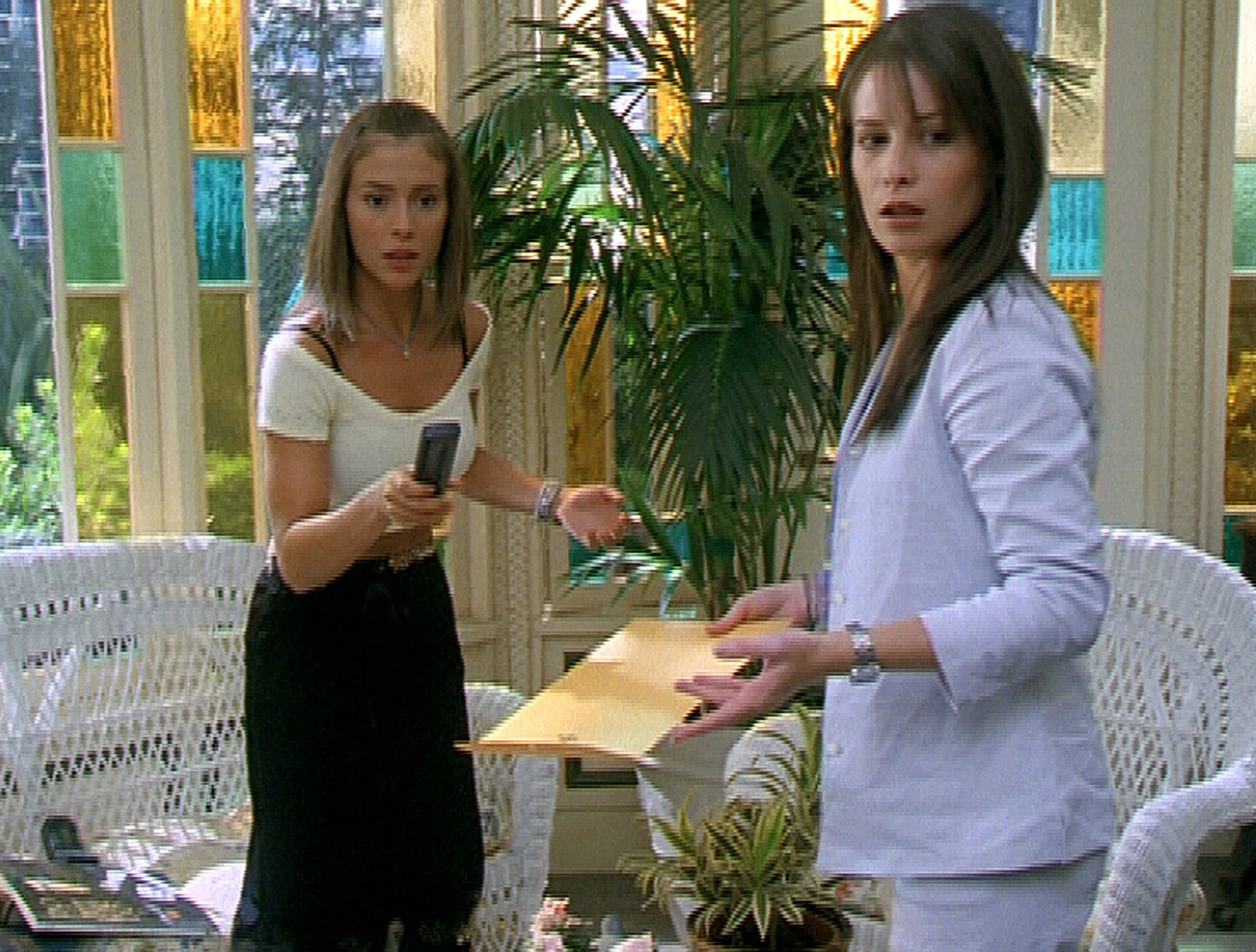 Opfer der SehnsuchtPhoebe (Alyssa Milano, l.), Piper (Holly Marie Combs, r.) und Paige wollen eine Pause, doch Chris hingegen will ständig Dämonen jagen. Da sich die Schwestern weigern, das gleiche zu tun, setzt Chris - dessen Autorität auf dem Spiel steht - einen Dämon auf sie an ...Bild: © Paramount Pictures. Lizenzbild frei