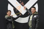 Folge 12Maja und Cem bei der Präzisionsarbeit in der Sendung "Checkpoint" im Wettkampf "Jungs gegen Mädchen".Bild: © ZDF/Sina Klaus