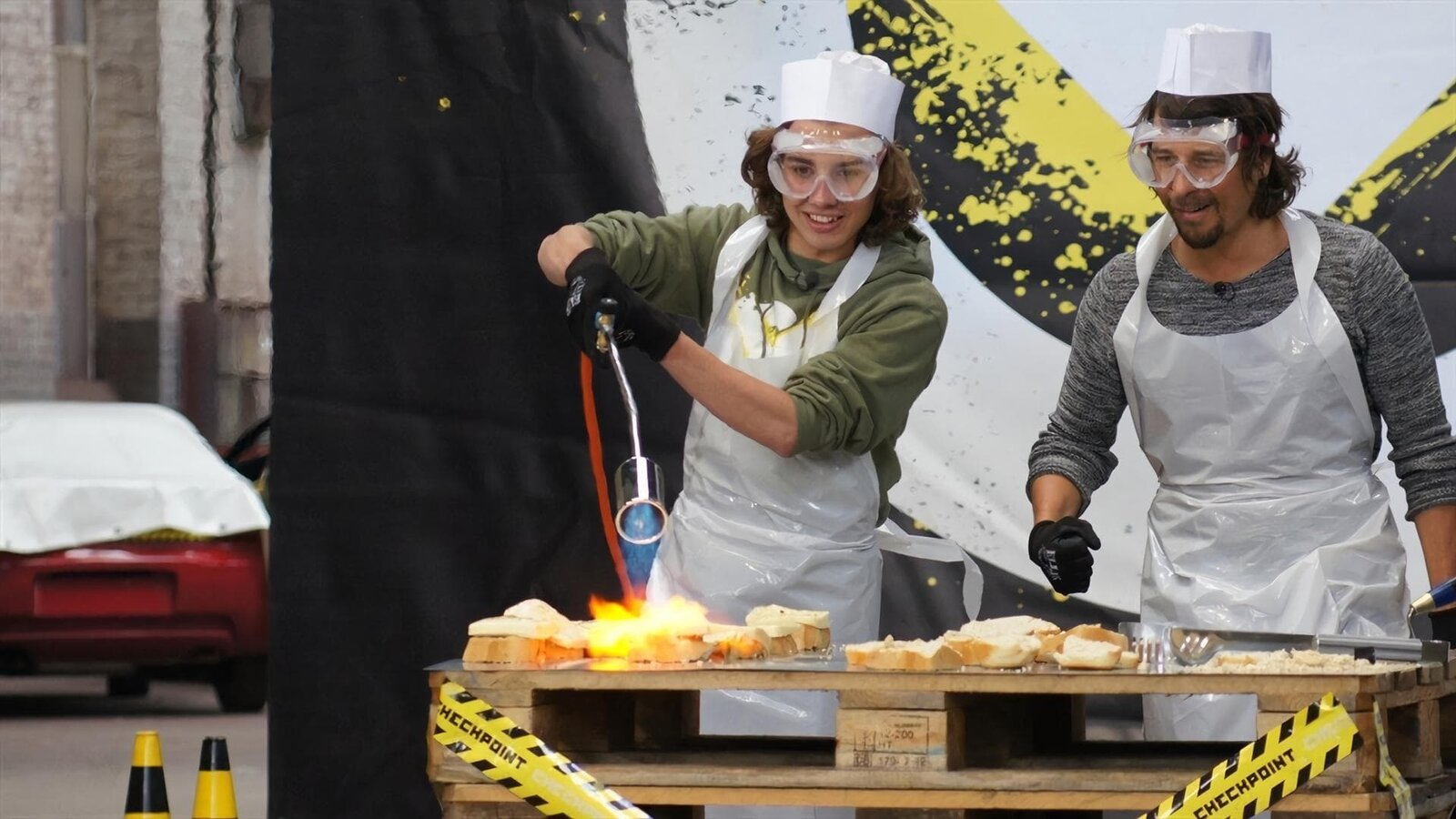 Folge 12Cem, Tommy Scheel und Felix (v.l.n.r.) beobachten eine Staubexplosion.Bild: © "Bil...