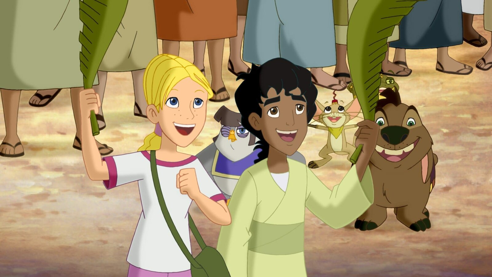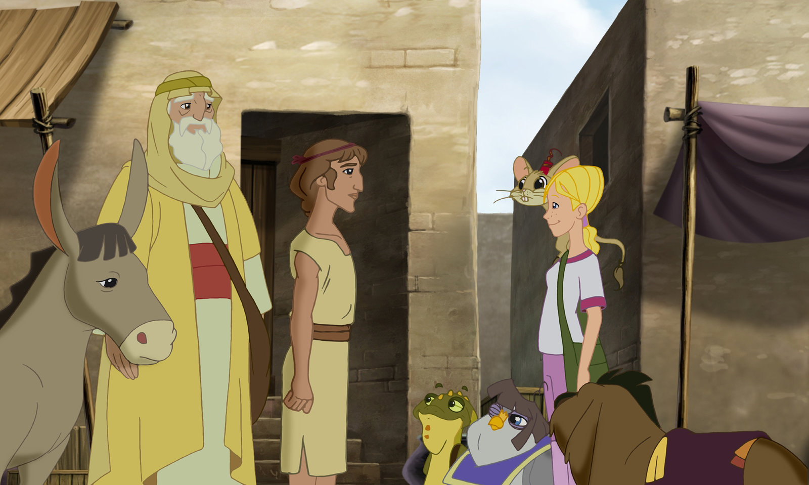Angekommen - Der Einzug in JerusalemCora und Habib sind in besonderem Maße auf die Hilfe der Wonderers angewiesen, denn wie sollen sie unter all den hunderten Eseln genau den einen finden, auf dem Jesus in die Stadt reiten muss?Bild: © KiKA/Cross Media/Beta/Trickompany 2010