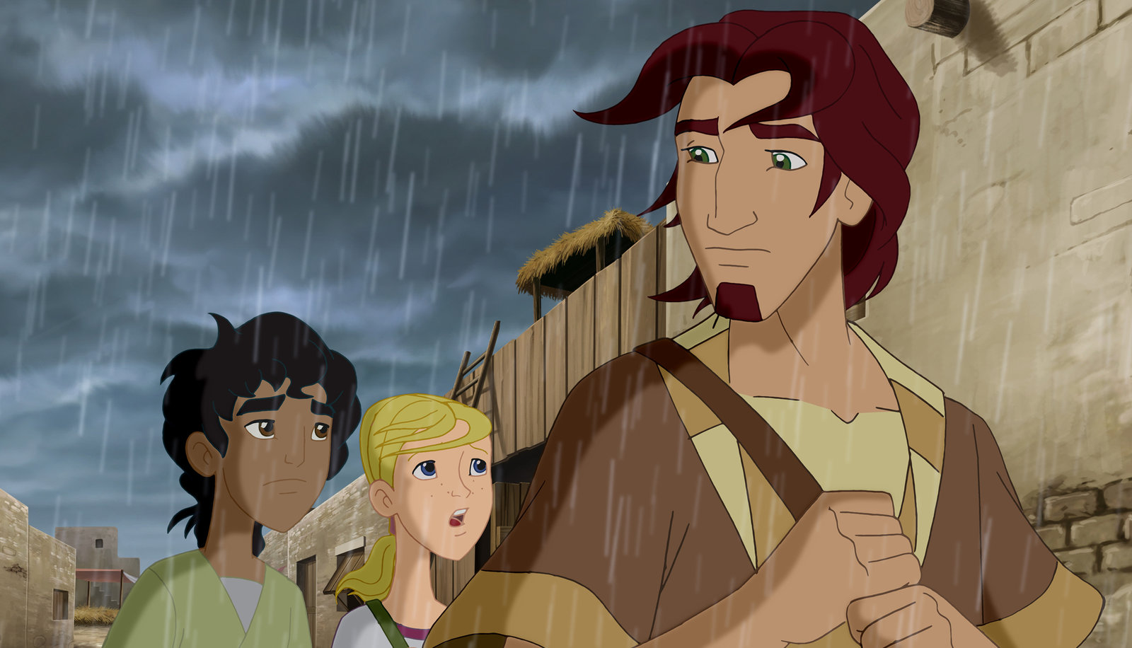 Aufgespürt - Rettung im UntergrundCora, Habib und die Wonderers kehren nach Jerusalem zurück, wo sie Barrabas wiederbegegnen.Bild: © KiKA/Cross Media/Beta/Trickompany 2010