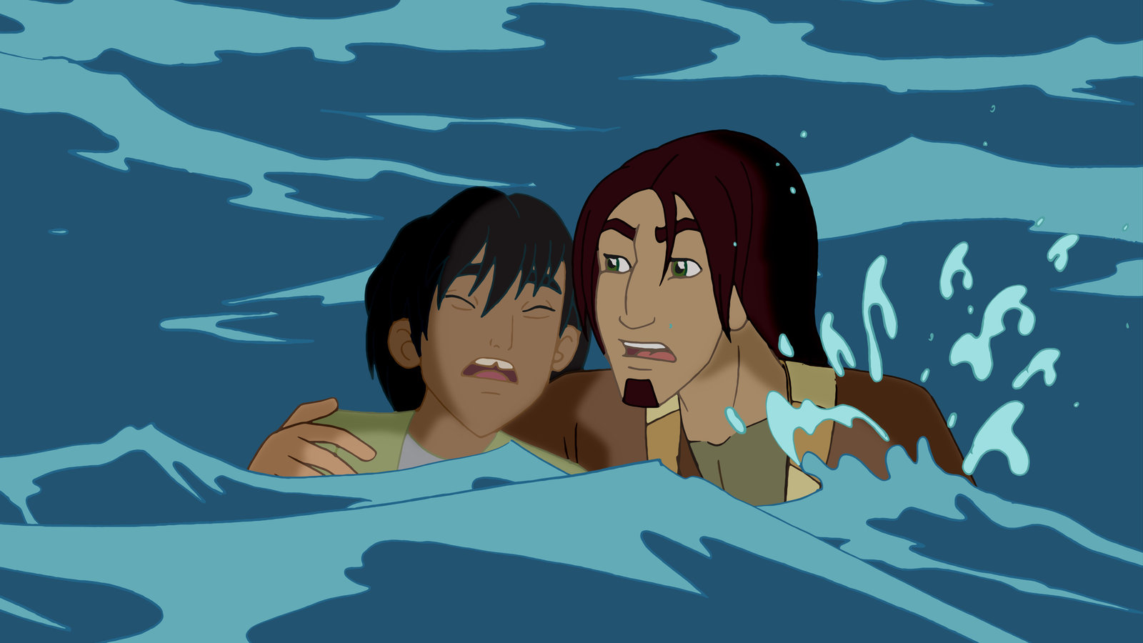 Verschluckt - Jona im Bauch des WalsJona versucht Habib zu retten. Beide sind zusammen mit Cora über Bord gegangen und drohen nun zu ertrinken.Bild: © KiKA/Cross Media/Beta/Trickompany 2010