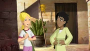 Auferweckt - Die große ÜberraschungHreel (li.) will von Maria Magdalena wissen, wo Jesus sich versteckt hat.Bild: © KiKA/Cross Media/Beta/Trickompany 2010