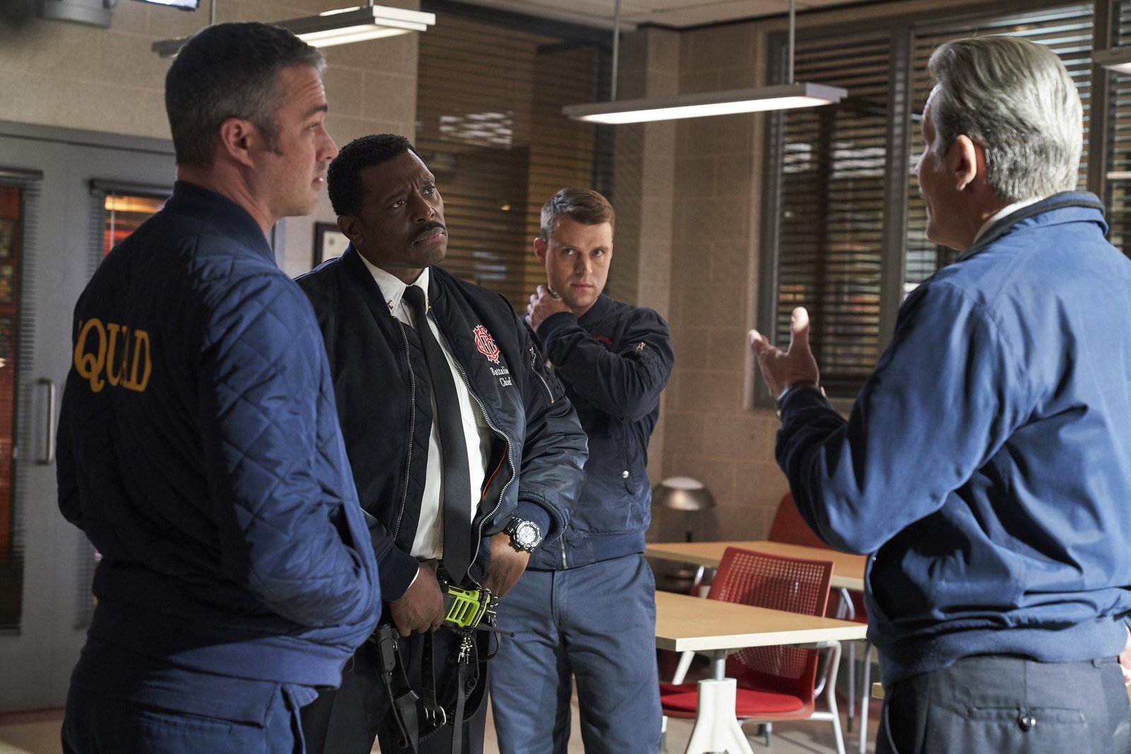 Der AugenzeugePictured: (l-r)Kelly Severide (Taylor Kinney), Wallace Boden (Eamonn Walker), Matthew Casey (Jesse Spencer), Chief Grissom (Gary Cole) -- (Photo by: Parrish Lewis/NBC)Bild: © Universal TV