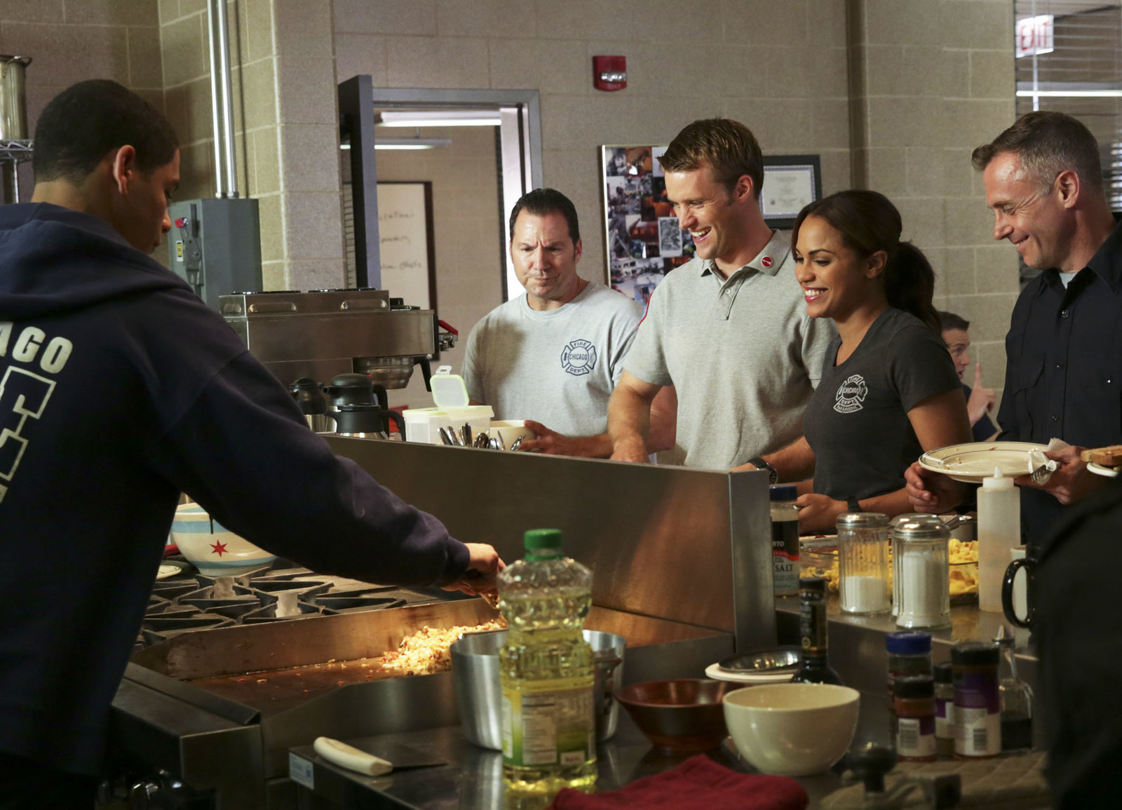 Die ProblemwacheDie Hauptdarsteller aus «Chicago Fire»: Lauren German als Leslie Shay (l.), Taylor Kinney als Kelly Severide (2.v.l.), Eamonn Walker als Walter Boden (4.v.l.), Jesse Spencer als Matthew Casey (M.), Charlie Barnett als Peter Mills (4.v.r.), Monica Raymund als Gabriela Dawson (3.v.r.)Bild: © SRF/NBC Universal