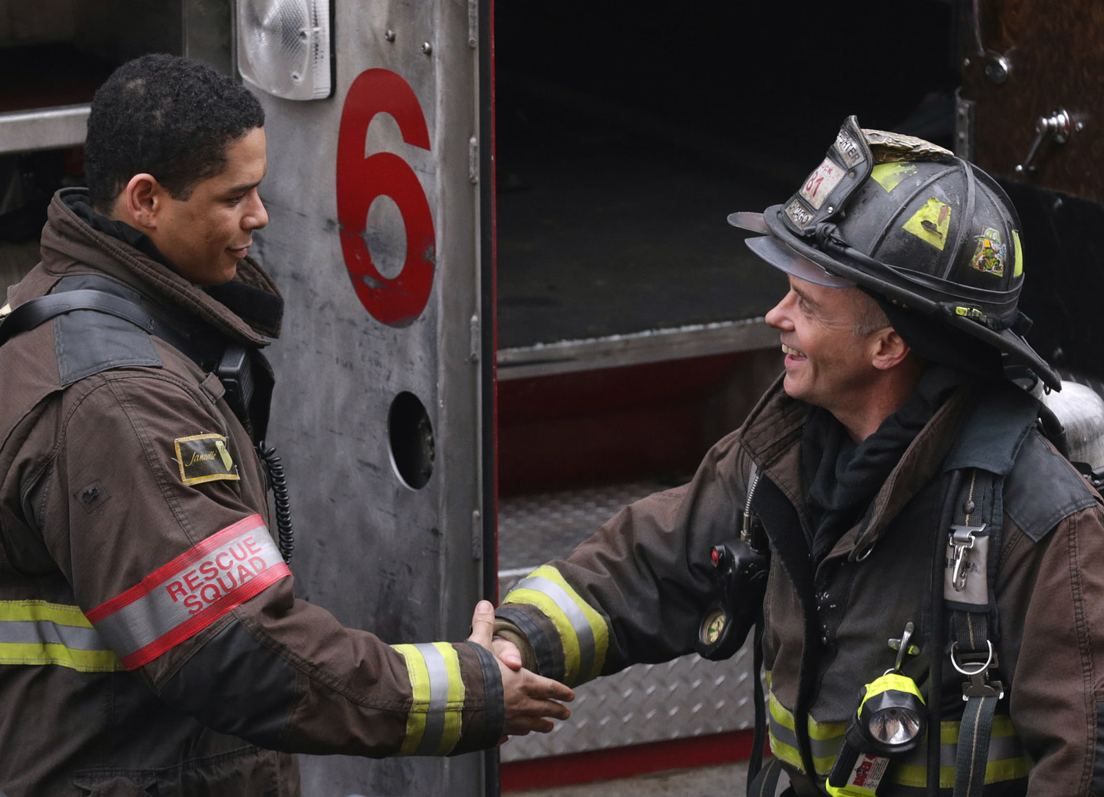 Zwei FamilienGratuliert seinem Team nach dem Einsatz: Eamonn Walker als Chief BodenBild: © SRF/NBC Universal