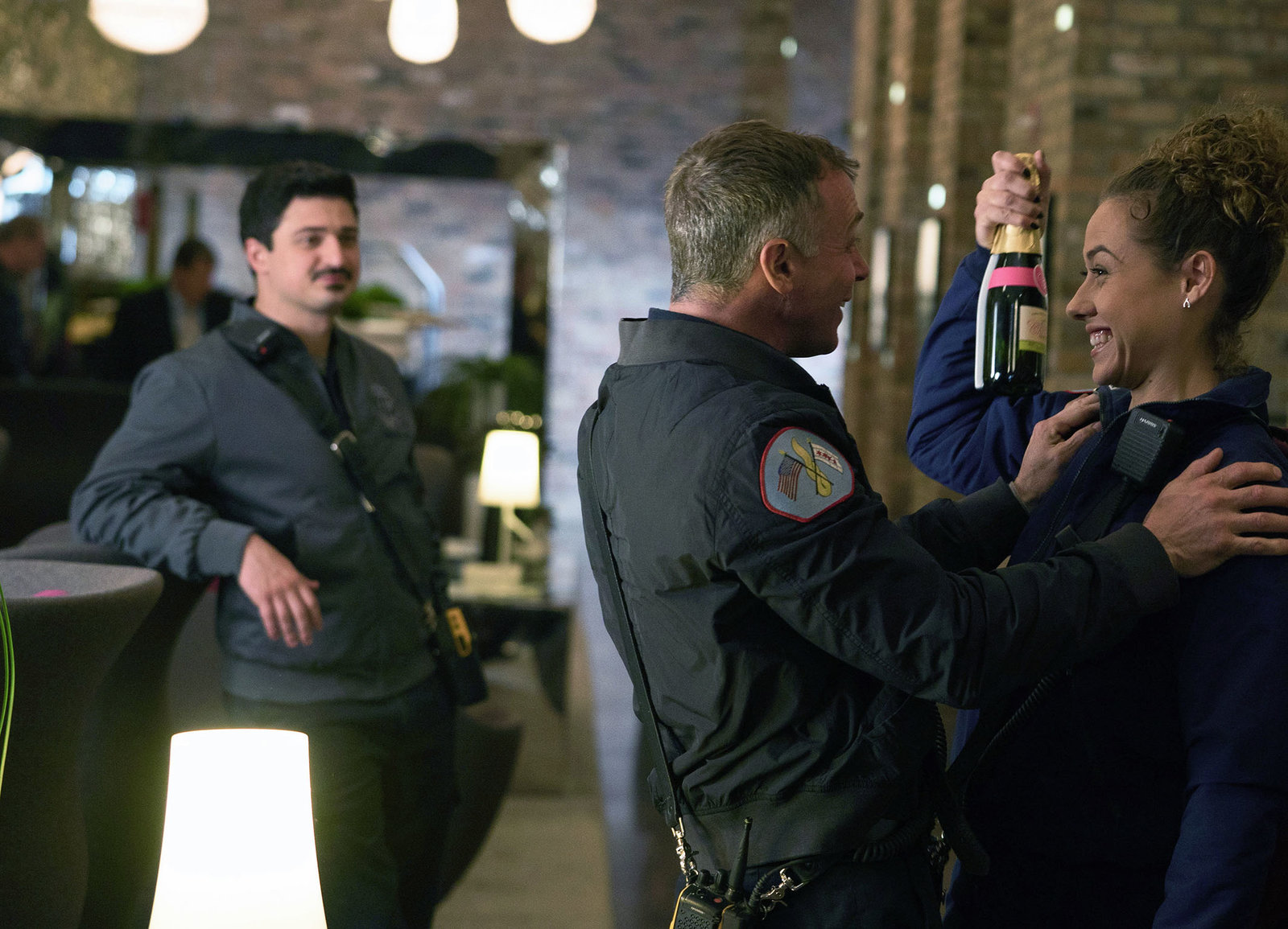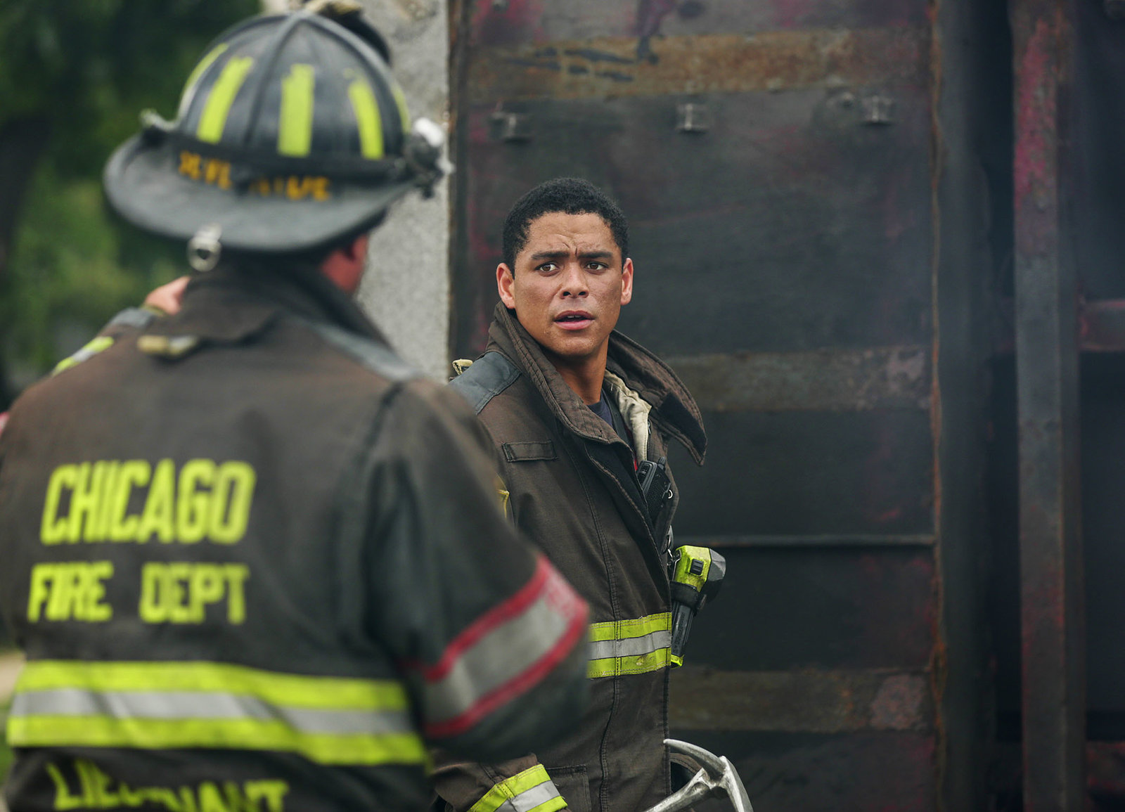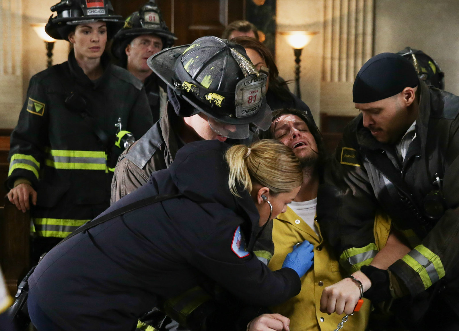RastlosChicago Fire Rastlos - Ambush Predator Staffel 3, Episode 12 Schwierige Rettungsaktion: Kara Killmer als Sylvie Brett, Charlie Barnett als Peter Mills, Christian Stolte als MouchBild: © SRF/NBC Universal