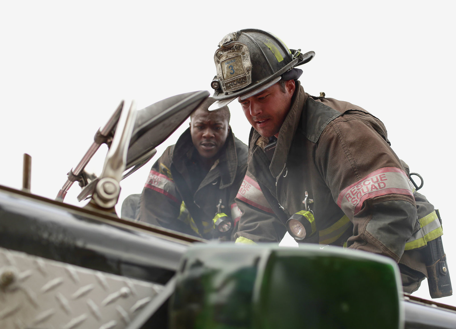 KollisionRettung in letzter Sekunde: Laroyce Hawkins als Kevin Atwater, Taylor Kinney als Kelly SeverideBild: © SRF/NBC Universal