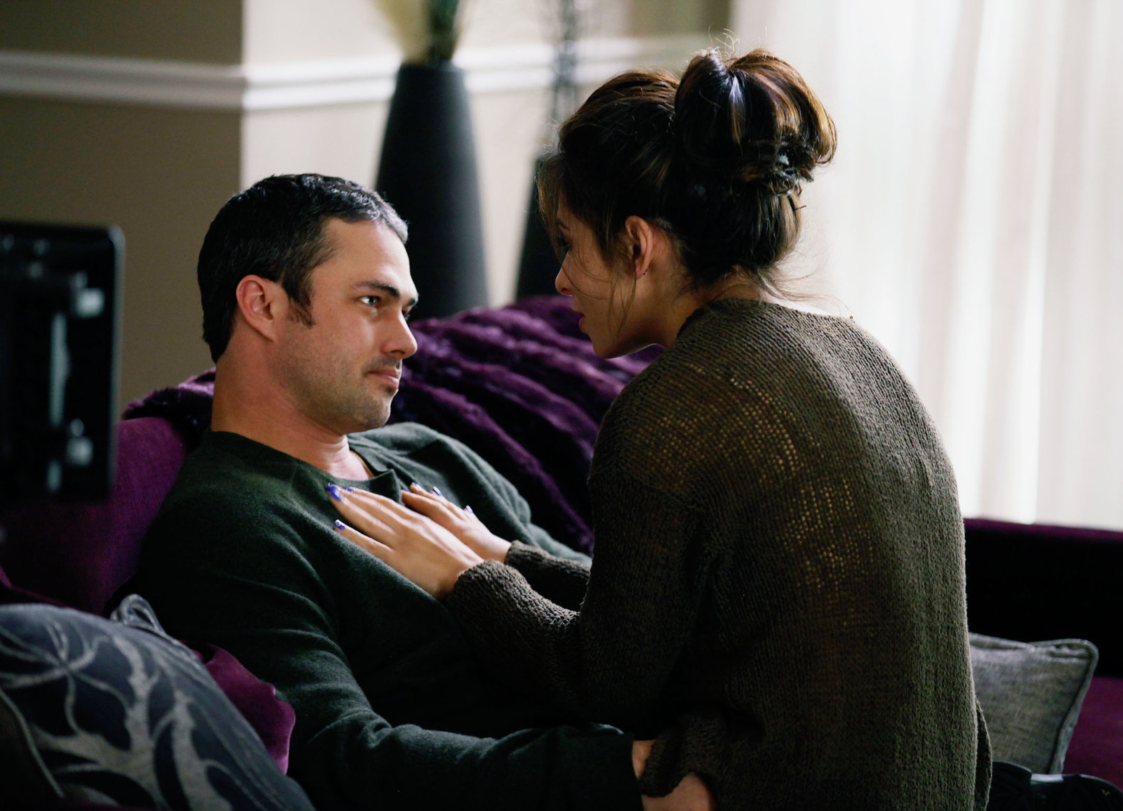 Harte EntscheidungenAbschied für immer?: Taylor Kinney als Kelly Severide, Kelli Barrett als Renee WhaleyBild: © SRF/NBC Universal