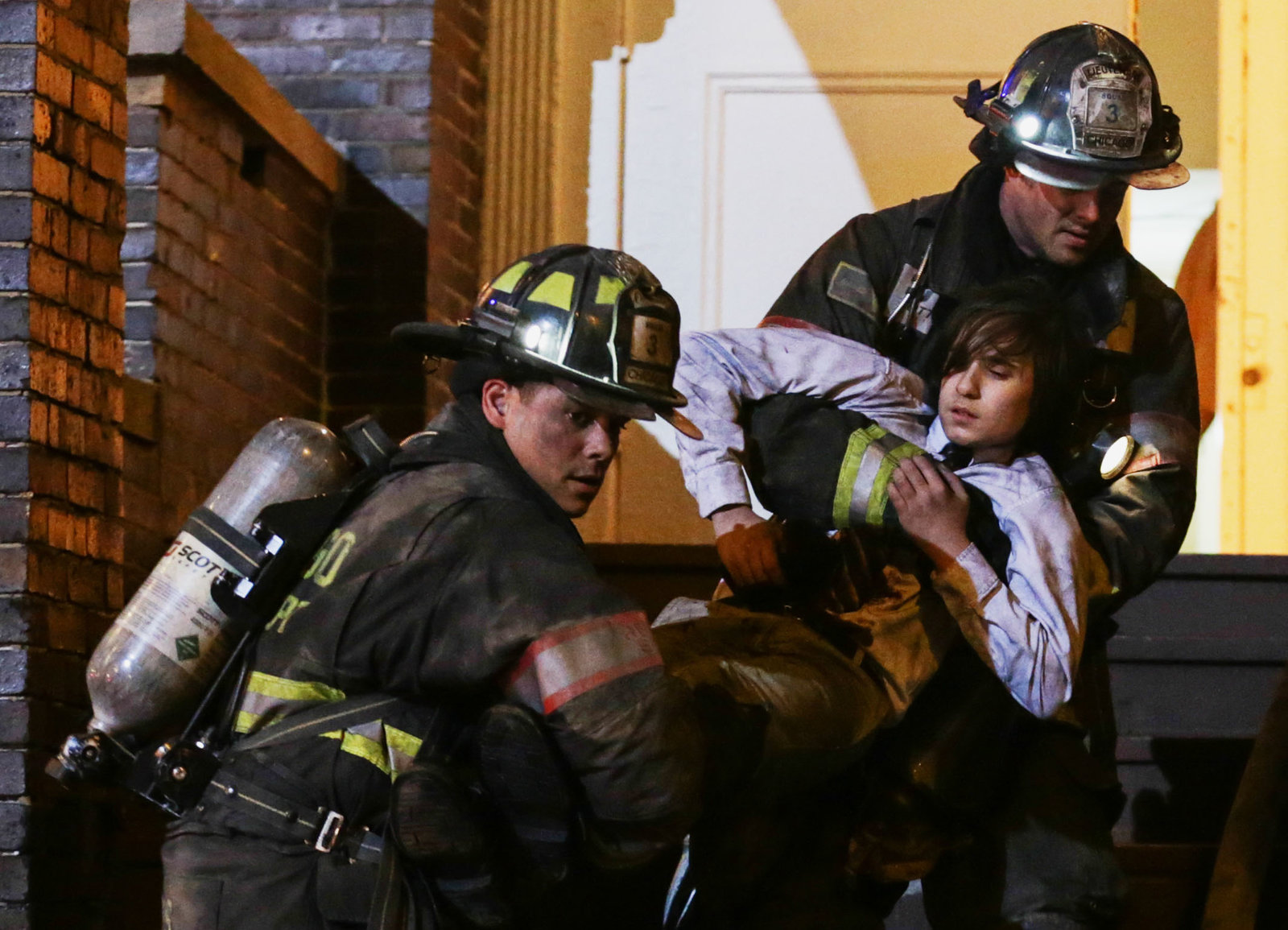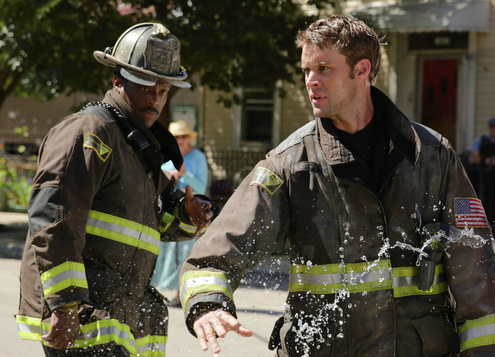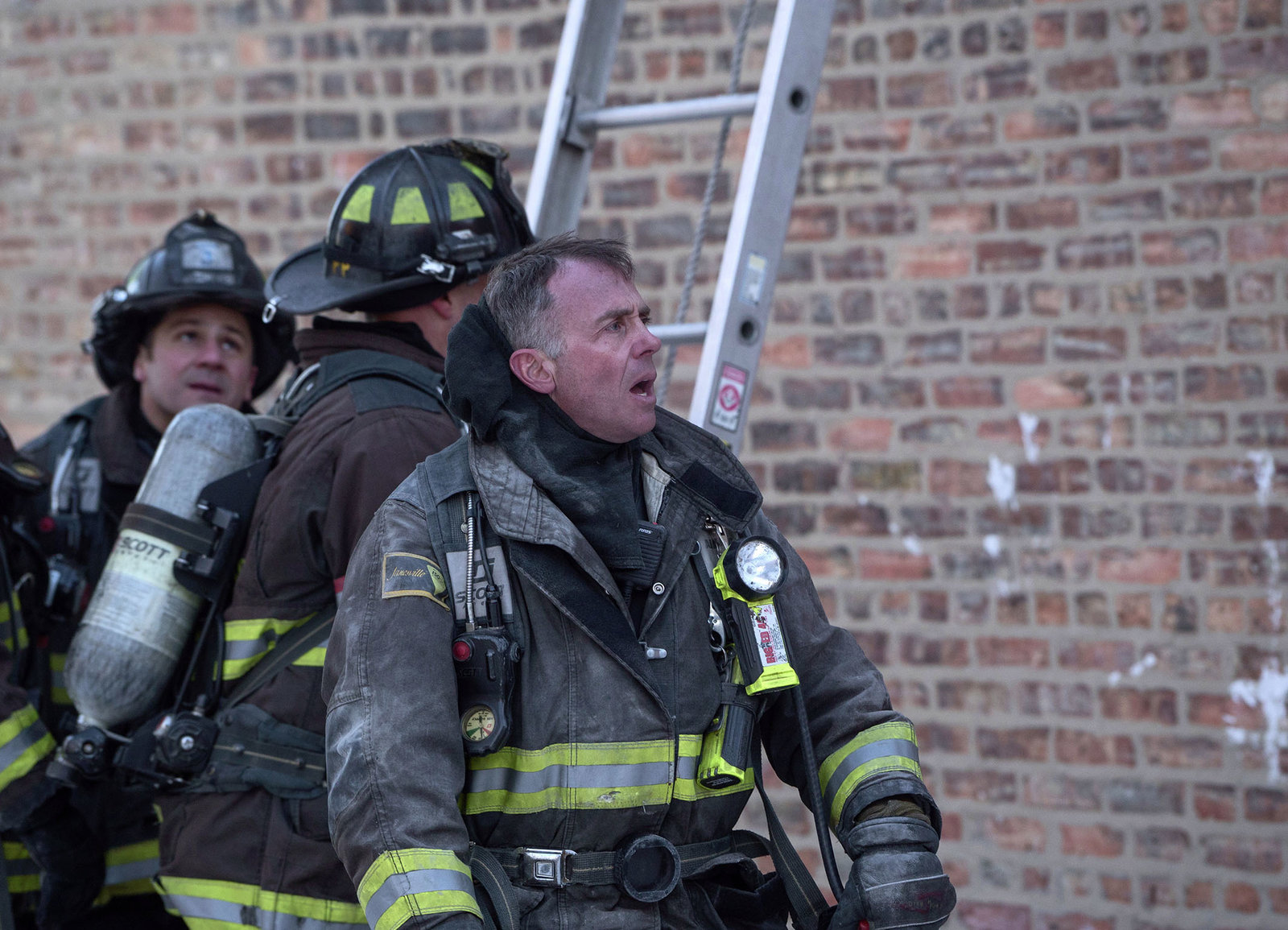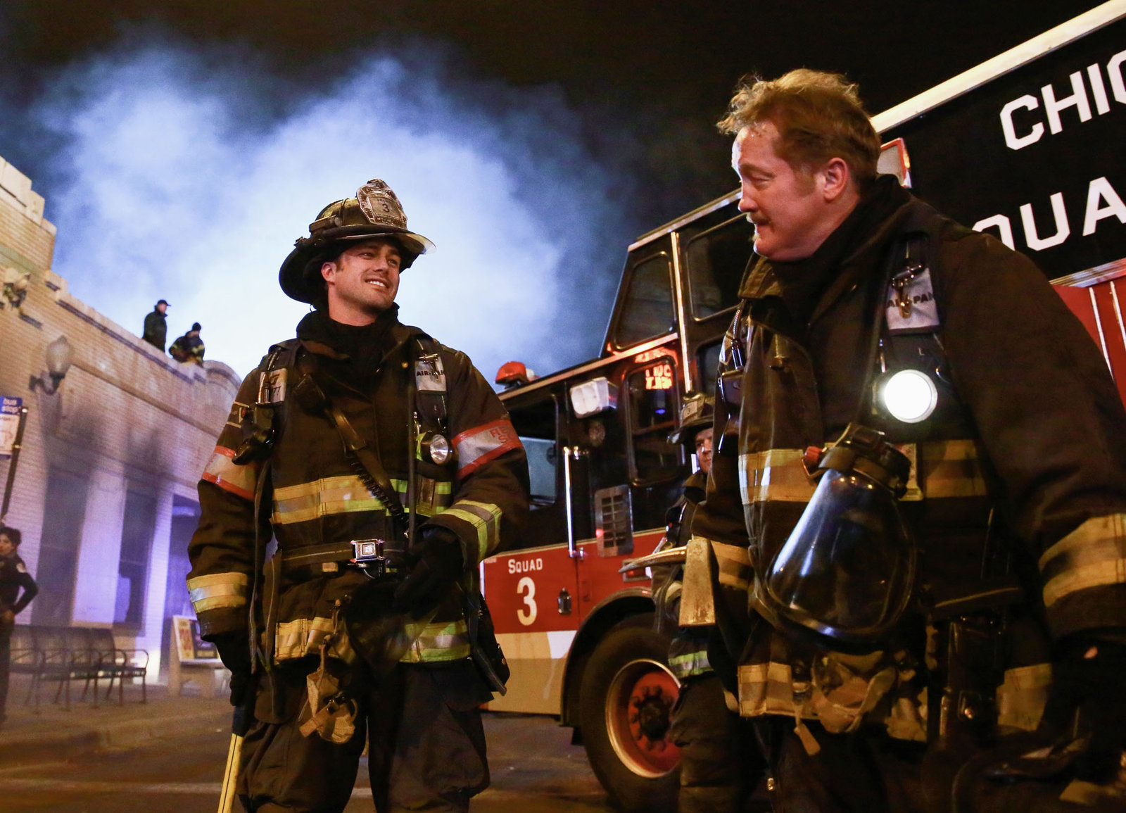 SeitenwechselRettung: Laroyce Hawkins als Kevin Atwater, Taylor Kinney als Kelly Severide, Jesse Spencer als Matthew CaseyBild: © SRF/NBC Universal