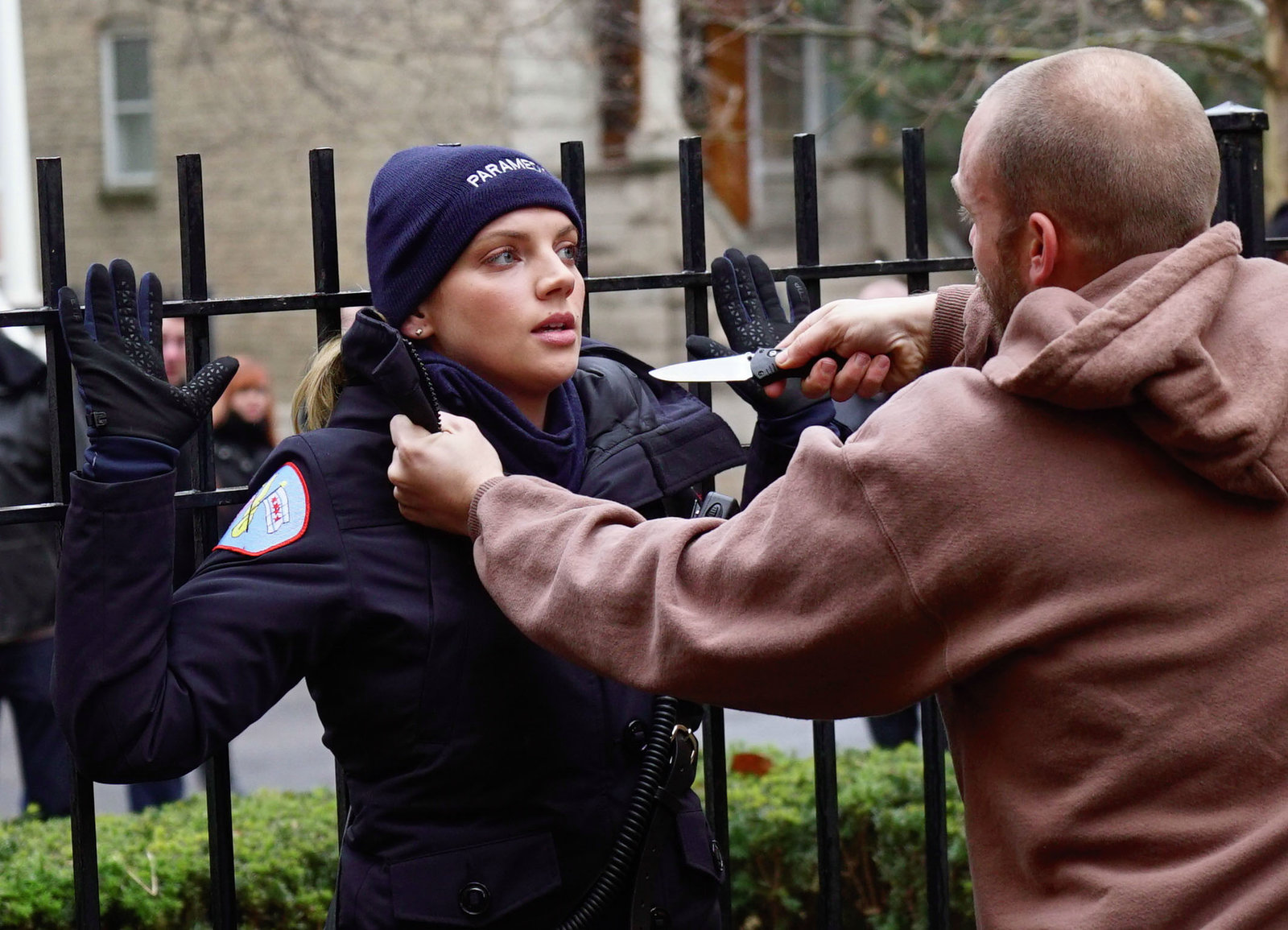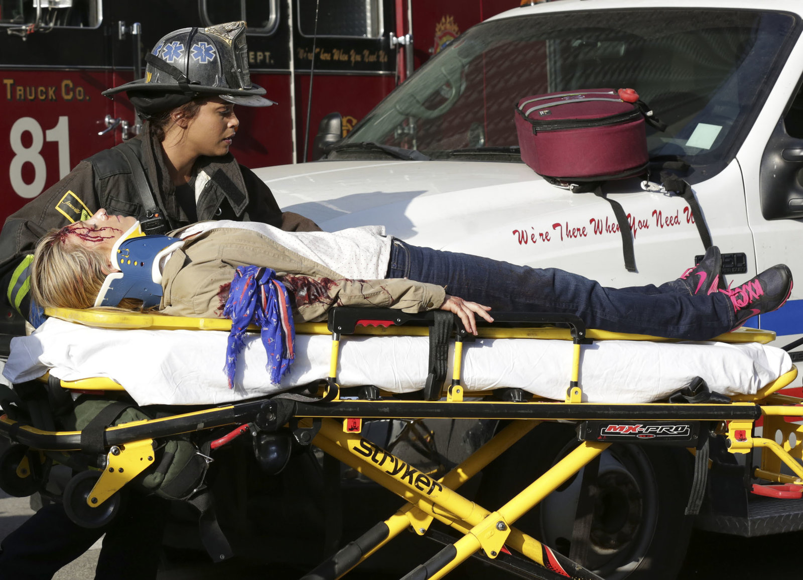 FehlalarmSie hat die Verletzte gesichert:Monica Raymund als Gabriela Dawson (Copyright SRF/NBC Universal)Bild: © SRF/NBC Universal