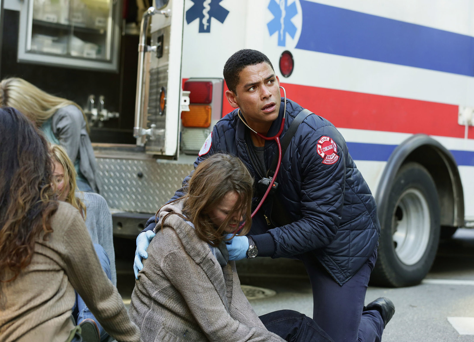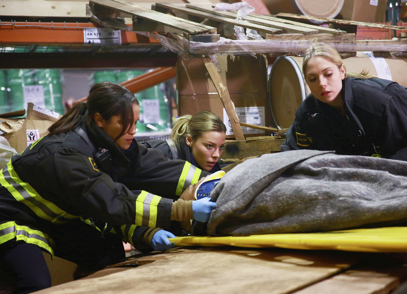 AmbitionenSie bergen einen Schwerverletzten: Monica Raymund als Gabriela Dawson, Lauren German als Leslie Shay, Brooke Nevin als Tara LittleBild: © SRF/NBC Universal