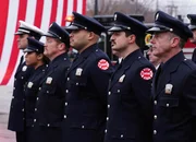 Der BrandstifterBei der Ehrenfeier für ihre tote Kollegin: Jesse Spencer als Matthew Casey, Monica Raymund als Gabriela Dawson, Christian Stolte als Mouch, Joe Minoso als Joe Cruz, Yuriy Sardarov als Otis, David Eigenberg als Christopher HermannBild: © SRF/NBC Universal