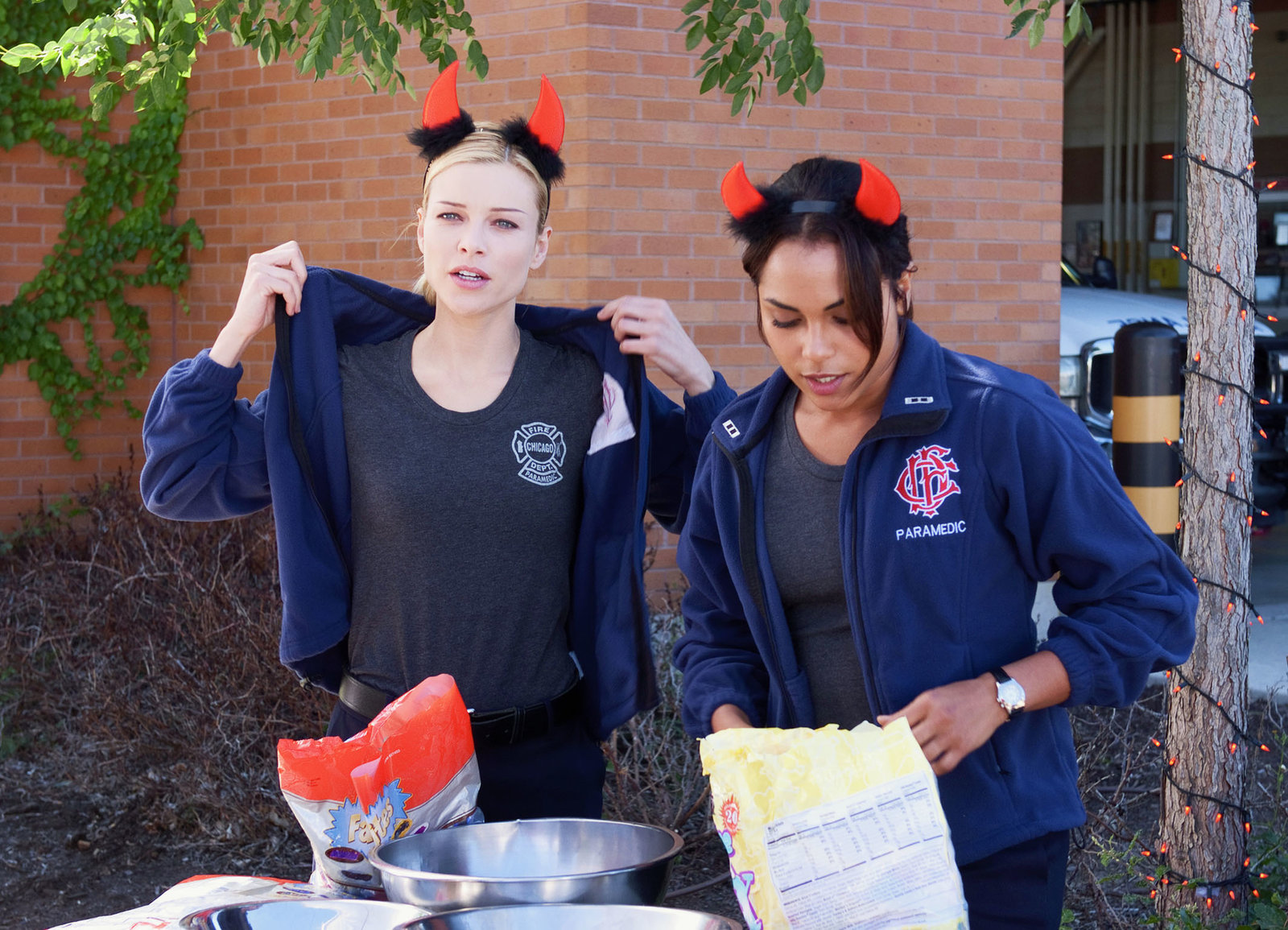 Eine MinuteHappy Halloween: Lauren German als Leslie Shay, Monica Raymund als Gabrielle Dawson (copyright SRF/NBC Universal)Bild: © SF