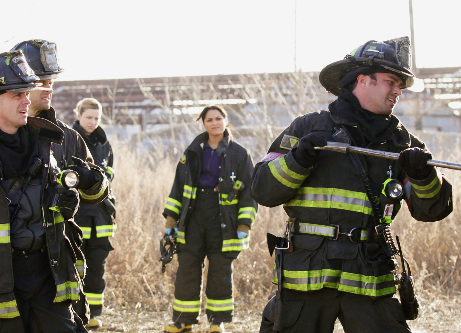 Harte EntscheidungenDie Rettungskräfte werden mit einem schrecklichen Fund konfrontiert: Charlie Barnett als Peter Mills, David Eigenberg als Christopher Herman, Jesse Spencer als Matthew Casey, Lauren German als Leslie Shay, Monica Raymund als Gabrielle Dawson, Taylor Kinney als Kelly SeverideBild: © SRF/NBC Universal