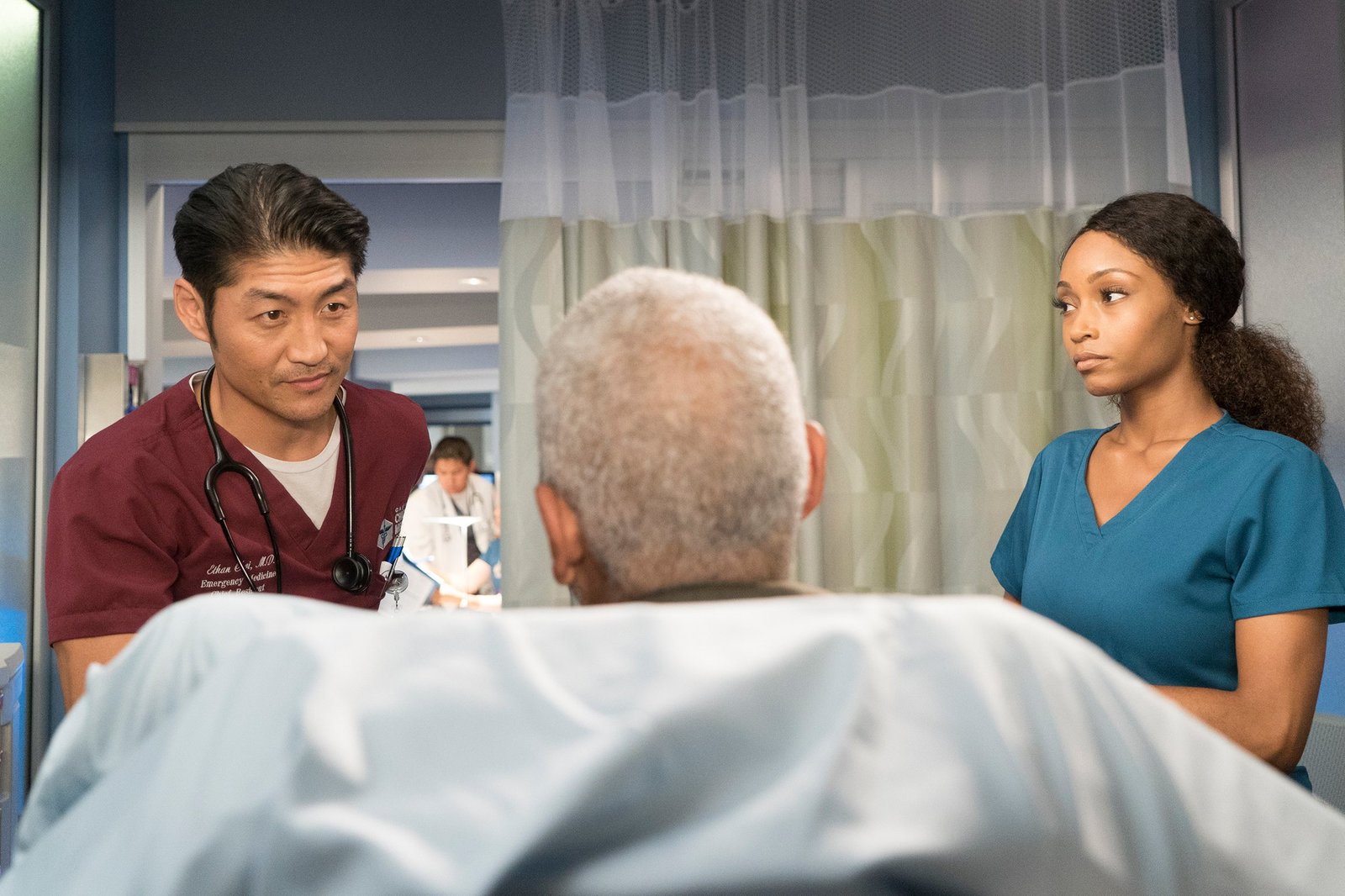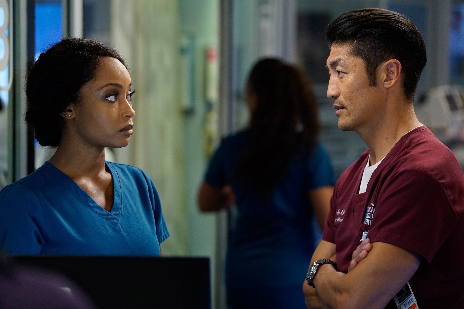 Zeit für StreitChicago Med Staffel 3 Folge 2 Sie versuchen den Patienten von einer Therapie zu überzeugen: Brian Tee als Dr. Ethan Choi, Yaya DaCosta als April Sexton Copyright: SRF/NBC UniversalBild: © SRF/NBC Universal