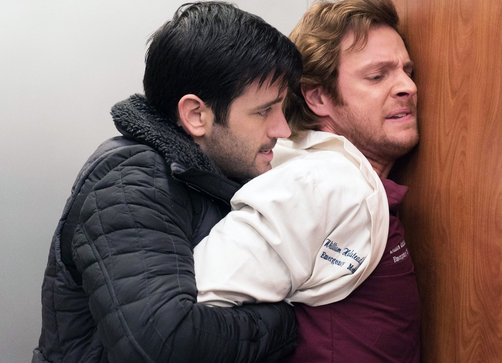 SelbstversuchChicago Med Selbstversuch - Guilty Staffel 1, Episode 12 Handgreifliche Auseinandersetzung: Colin Donnell als Dr. Connor Rhodes, Nick Gehlfuss als Dr. Will HalsteadBild: © SRF/NBC Universal
