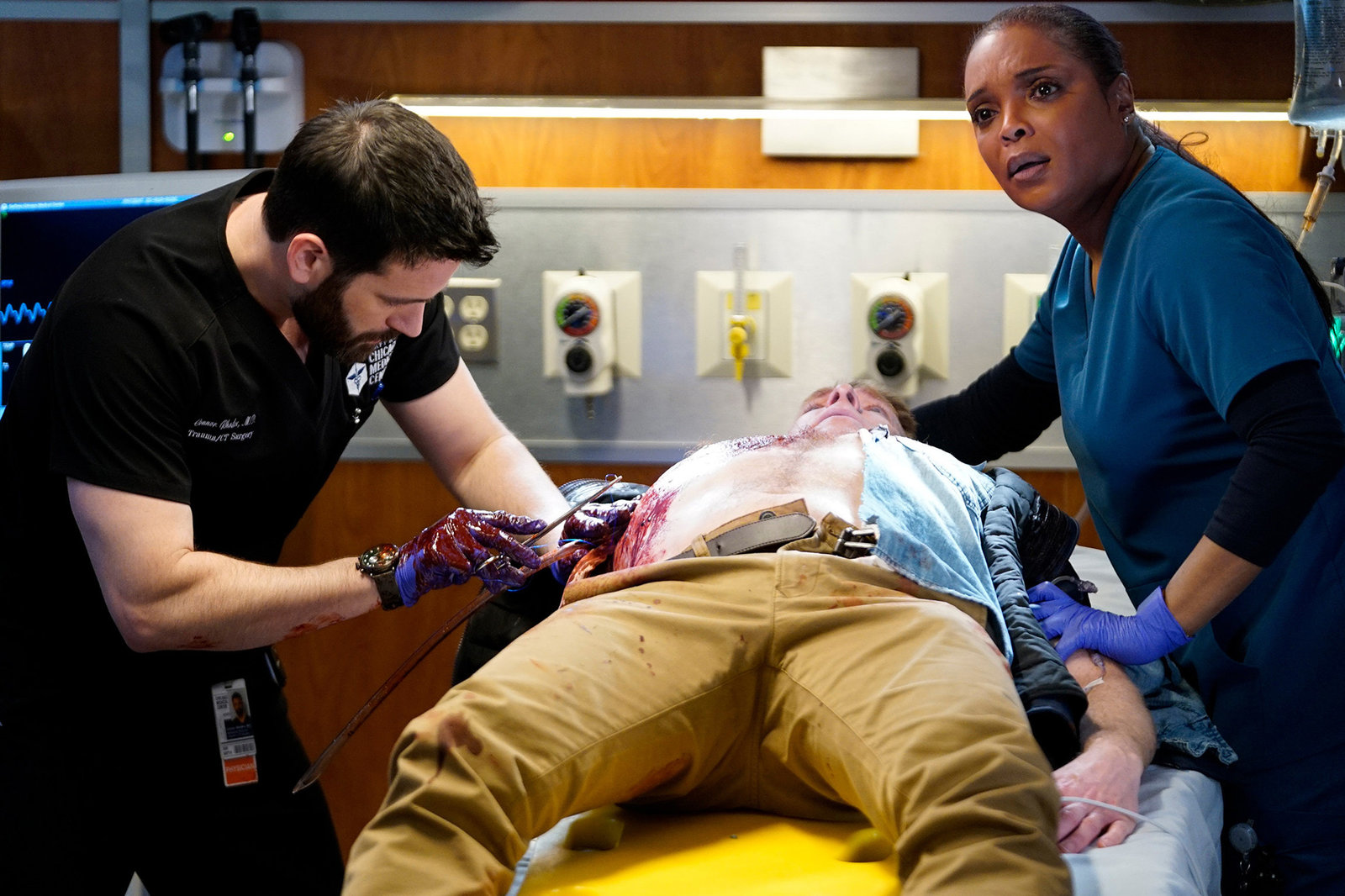 Im SchussfeldChicago Med, Im Schussfeld Staffel 4 Folge 19 Colin Donnell als Dr. Connor Rhodes. Marlyne Barrett als Maggie Lockwood. SRF/NBC UniversalBild: © SRF2