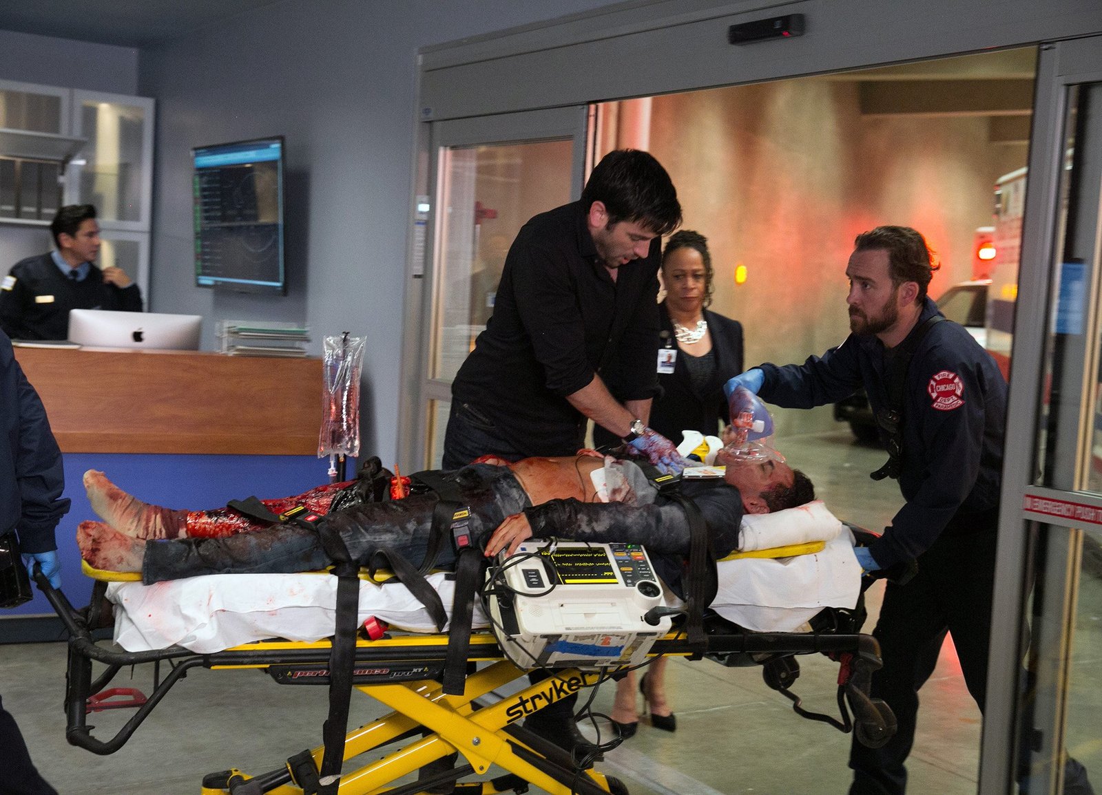 EntgleistChicago Med Entgleist - Derailed Staffel 1, Episode 1 Dramatische Rettungsaktion: Colin Donnell als Dr. Connor Rhodes (M.), S. Epatha Merkerson als Sharon Goodwin (im HG rechts)Bild: © SRF/NBC Universal