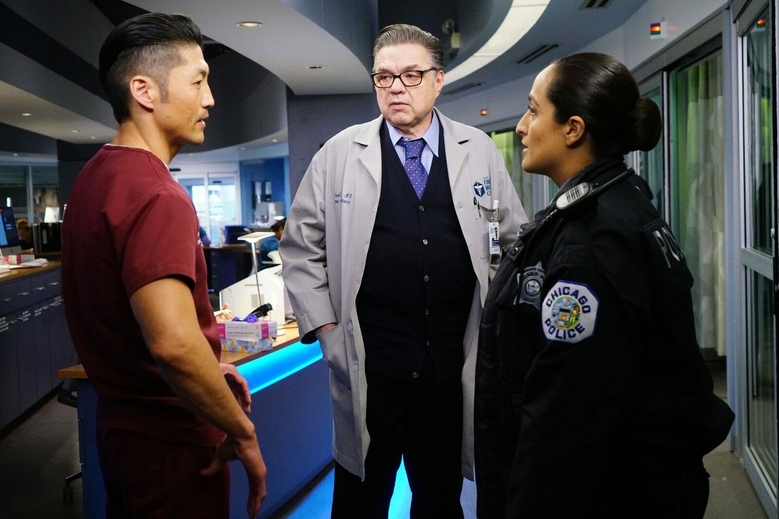 LoslassenChicago Med Loslassen - Lesson Learned Staffel 2, Episode 18 Sie besprechen einen Fall: Oliver Platt als Dr. Daniel Charles, Brian Tee als Dr. Ethan Choi, Rachel DiPillo als Sarah ReeseBild: © SRF