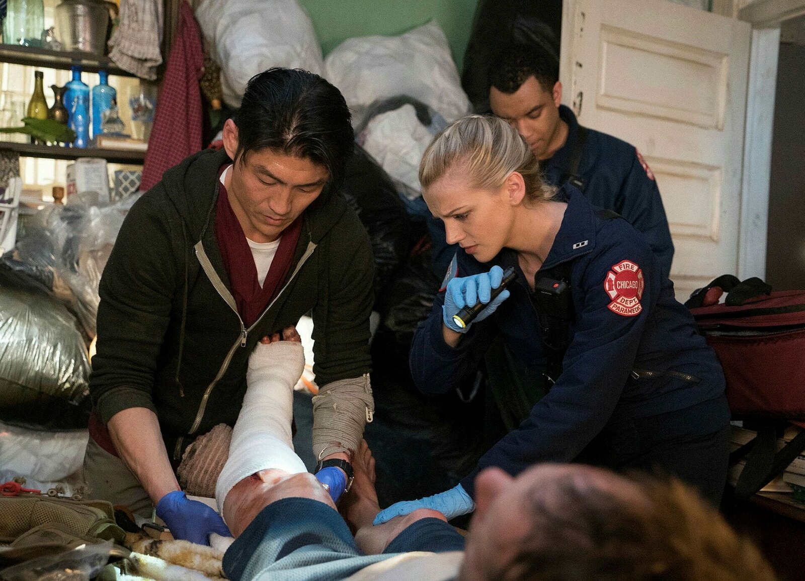 Unter BeobachtungChicago Med Unter Beobachtung - Disorder Staffel 1, Episode 16 Rettungsaktion in einem zugemüllten Haus: Brian Tee als Dr. Ethan Choi, Kara Kilmer als Sylvie BrettBild: © SRF