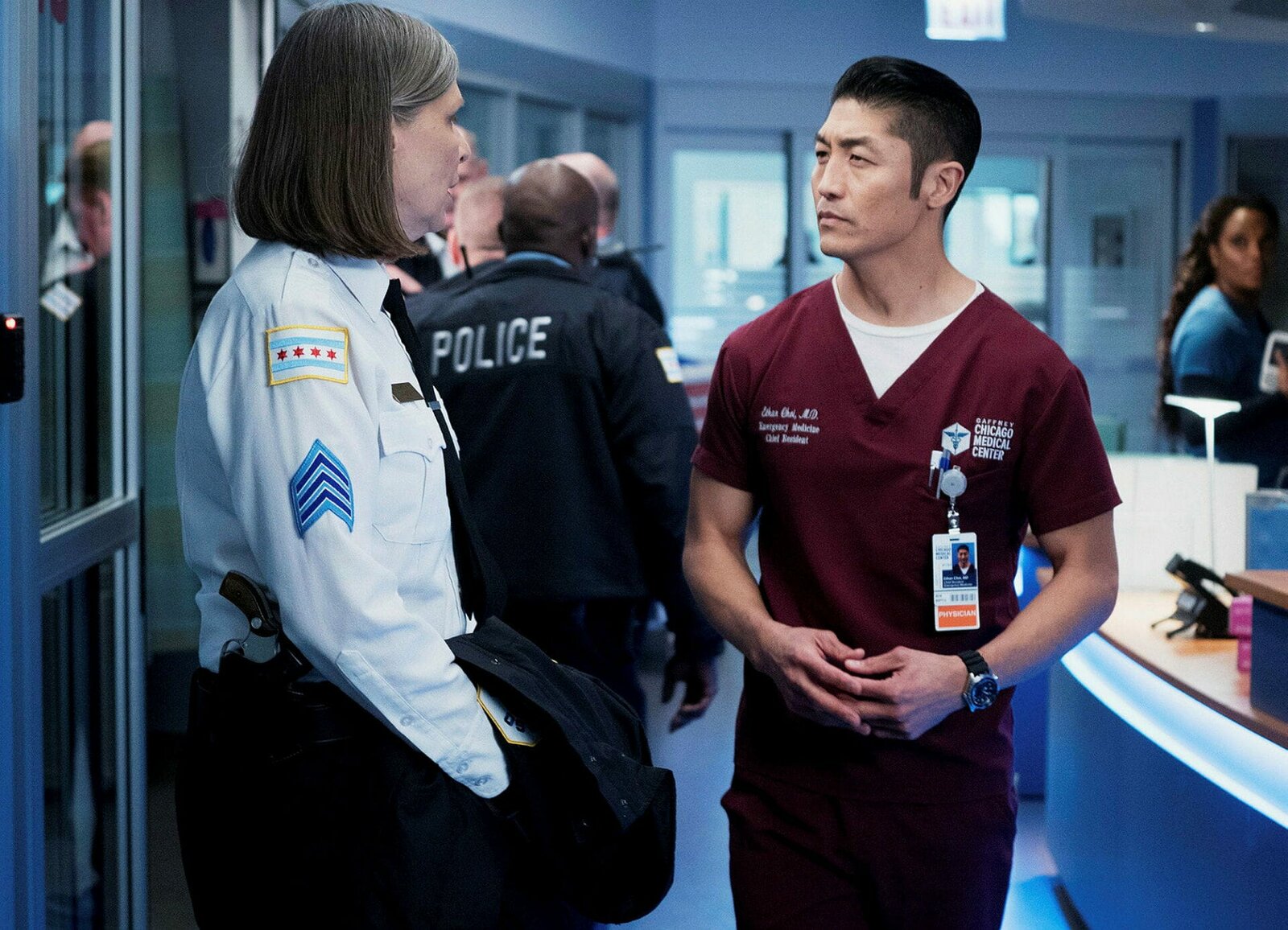Auf Herz und NierenChicago Med Auf Herz und Nieren - Heart Matters Staffel 2, Episode 10 Sie bittet ihn um einen Gefallen: Brian Tee als Dr. Ethan Choi, Trudy Platt als Amy Morton (Copyright SRF/NBC Universal)Bild: © SRF