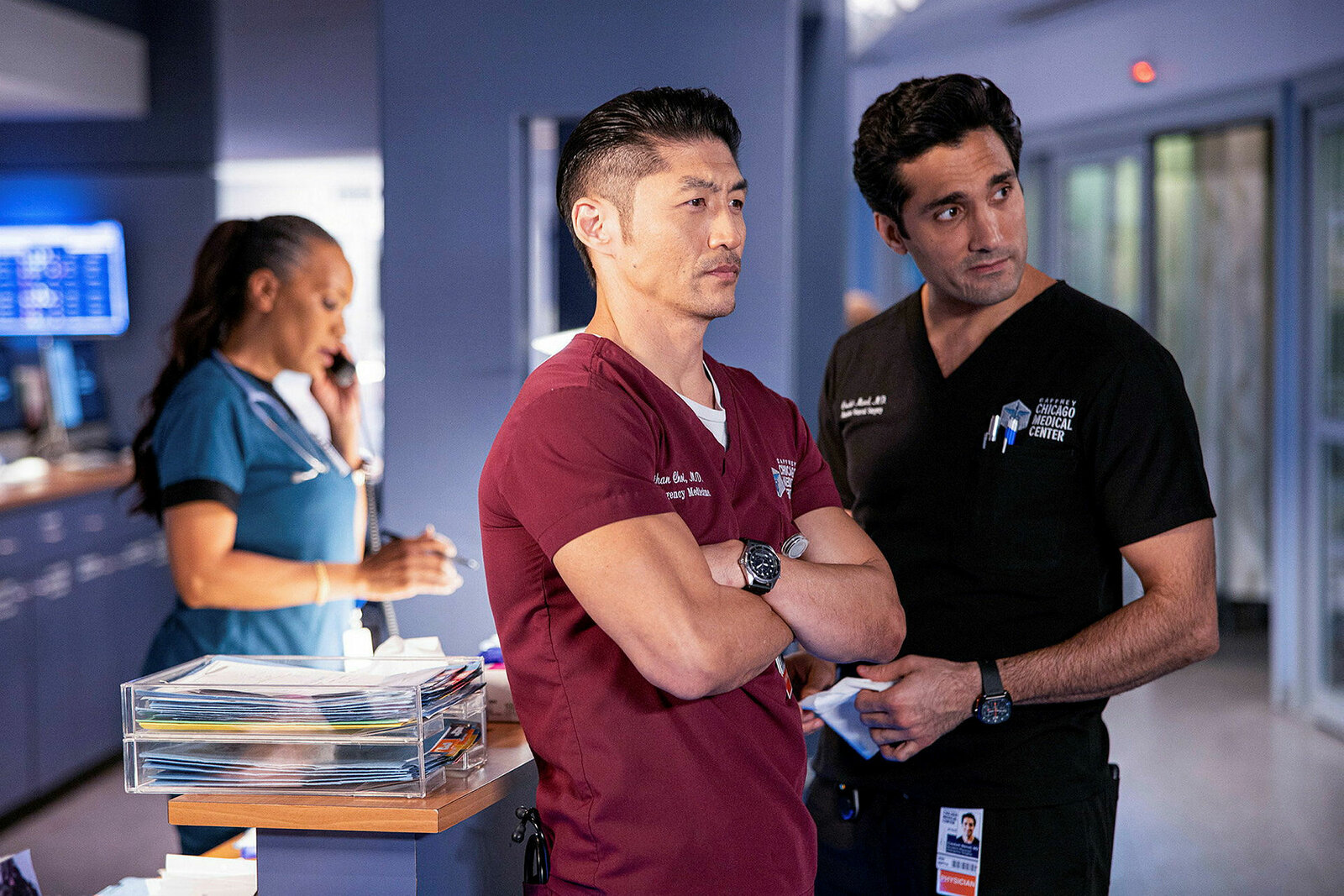 AbgewiesenChicago Med, Aufgeflogen Staffel 4 Folge 10 Unter Polizeischutz: Brian Tee als Dr. Ethan Choi (Mitte). Copyright: SRF/NBC UniversalBild: © SRF/NBC Universal