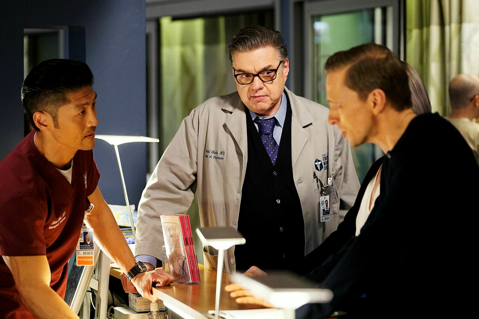 VerleugnungChicago Med Staffel 5 Folge 19 Brian Tee als Dr. Ethan Choi, Oliver Platt als Dr. Daniel Charles, John Henry Roberts als Harris Brand SRF/NBC UniversalBild: © SRF2
