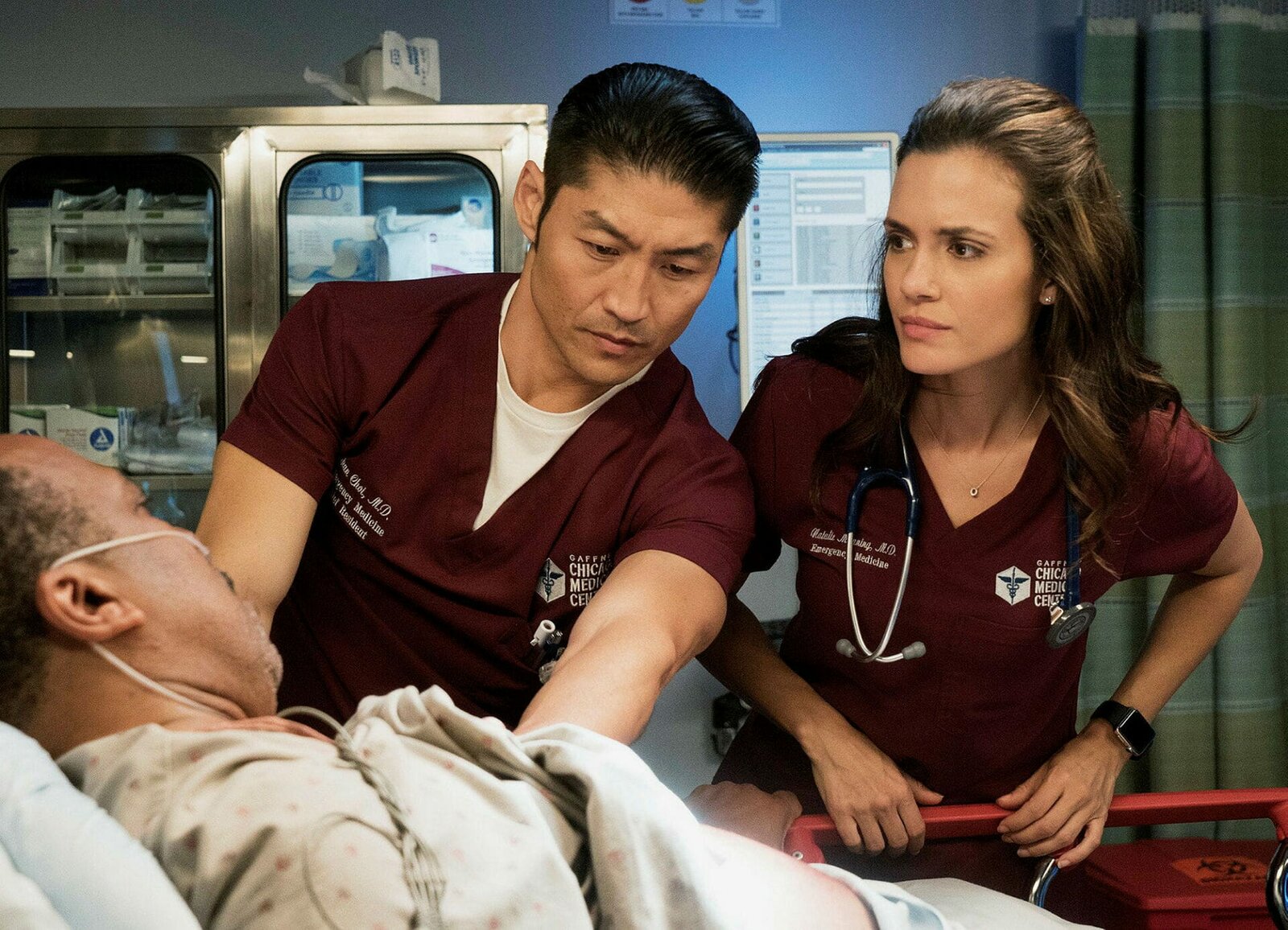 ZwickmühleChicago Med Zwickmühle - Inherent Bias Staffel 2, Episode 7 Die beiden tun alles, um ihrem Patienten zu helfen: Brian Tee als Dr. Ethan Choi, Torrey DeVitto als Dr. Natalie Manning (Copyright SRF/NBC Universal)Bild: © SRF