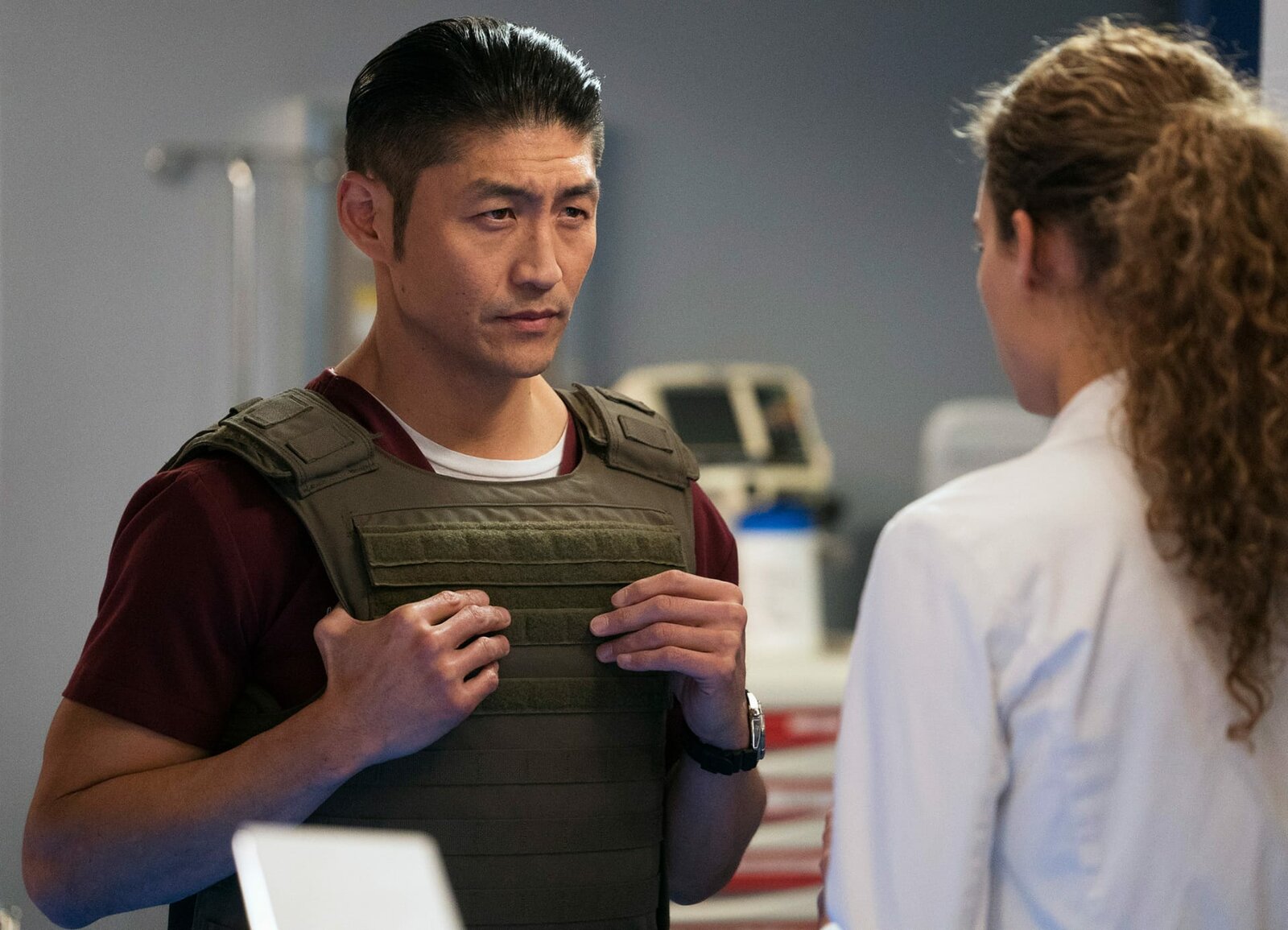 SpiegelbilderChicago Med Spiegelbilder - Mirror, Mirror Staffel 2, Episode 12 Er rüstet sich für einen ungewöhnlichen Einsatz: Brian Tee als Dr. Ethan Choi, Rachel DiPillo als Dr. Sarah ReeseBild: © Copyright SRF/NBC Universal