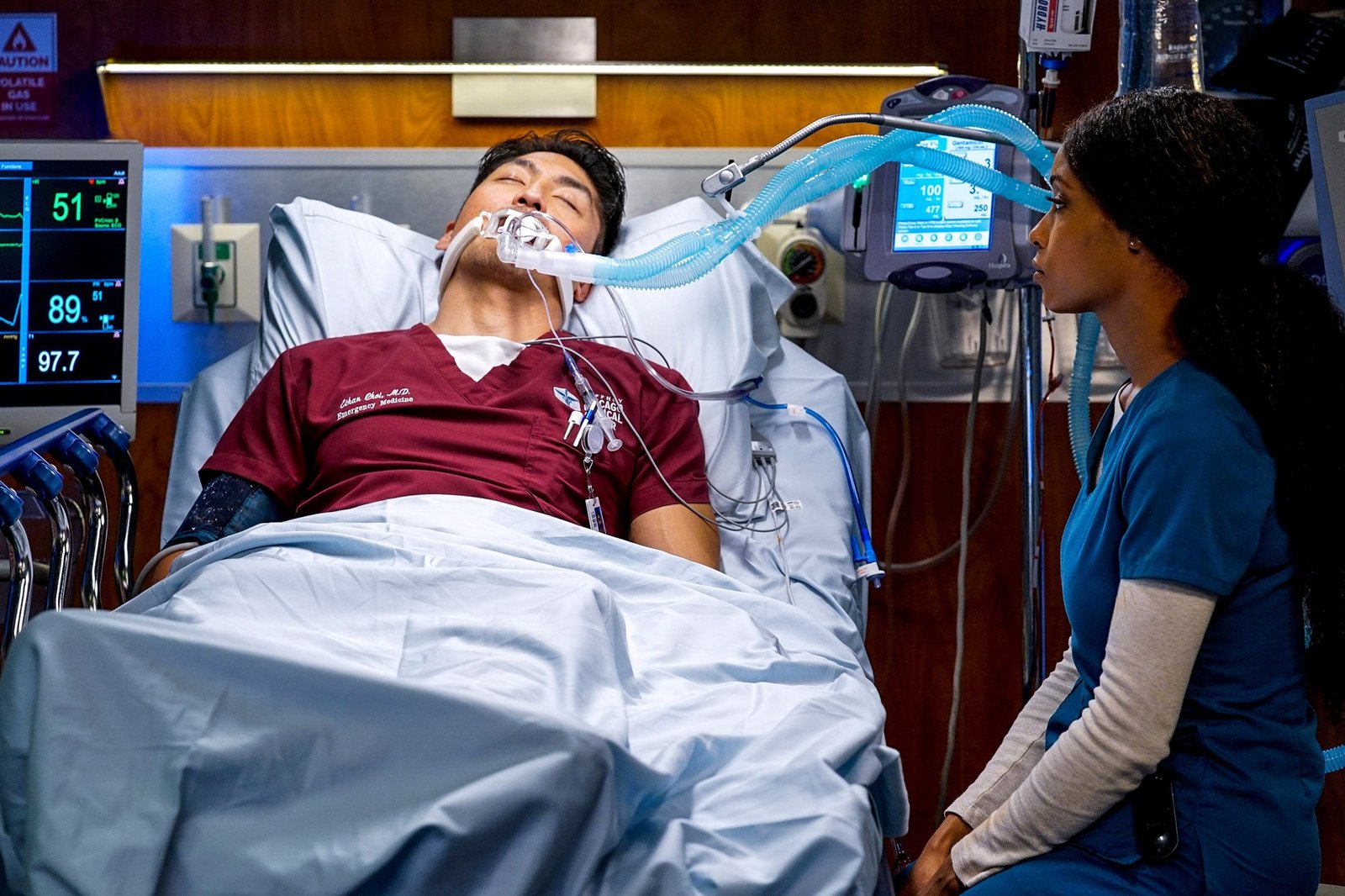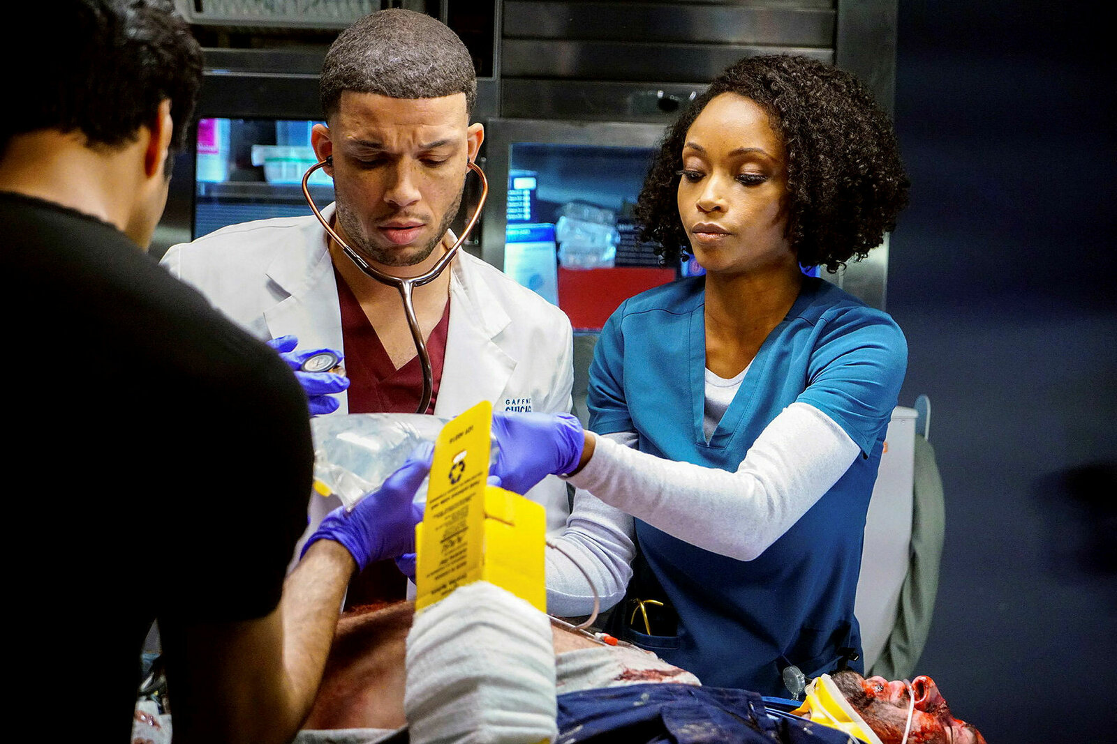 Code OrangeChicago Med, Code Orange Staffel 4 Folge 7 Er schwebt in Lebensgefahr: Brian Tee als Dr. Ethan Choi, Yaya DaCosta als April Sexton. Copyright: SRF/NBC UniversalBild: © SRF/NBC Universal