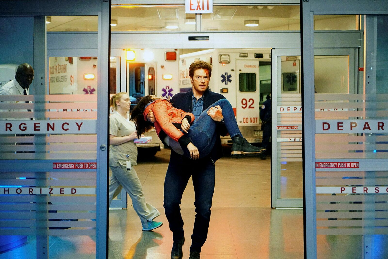 ZwickmühleEr eilt ihr zu Hilfe, als sie einen Hustenanfall hat: Roland Buck als Noah Sexton, Yaya DaCosta als April SextonBild: © SRF/NBC Universal