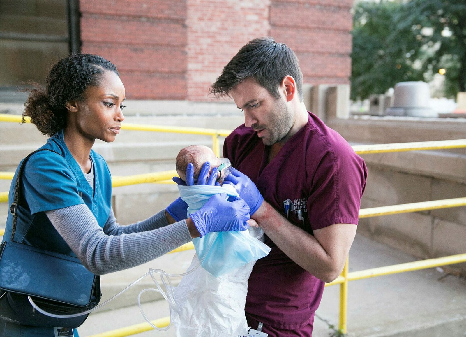 Zwischen Leben und TodChicago Med Zwischen Leben und Tod - iNO Staffel 1, Episode 2 Retten ein Baby in letzter Sekunde: Yaya DaCosta als April Sexton, Donnell als Dr. Connor RhodesBild: © SRF