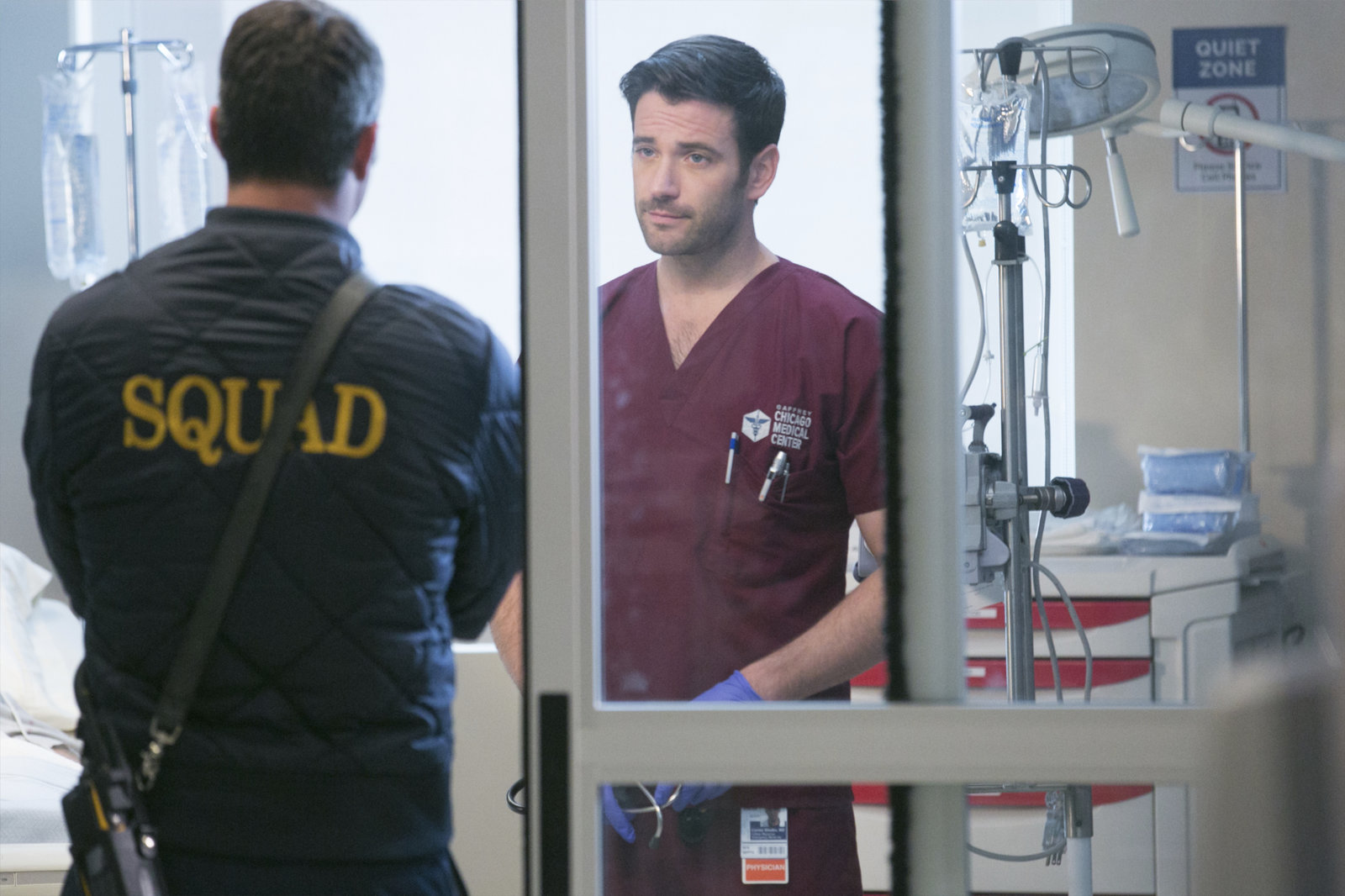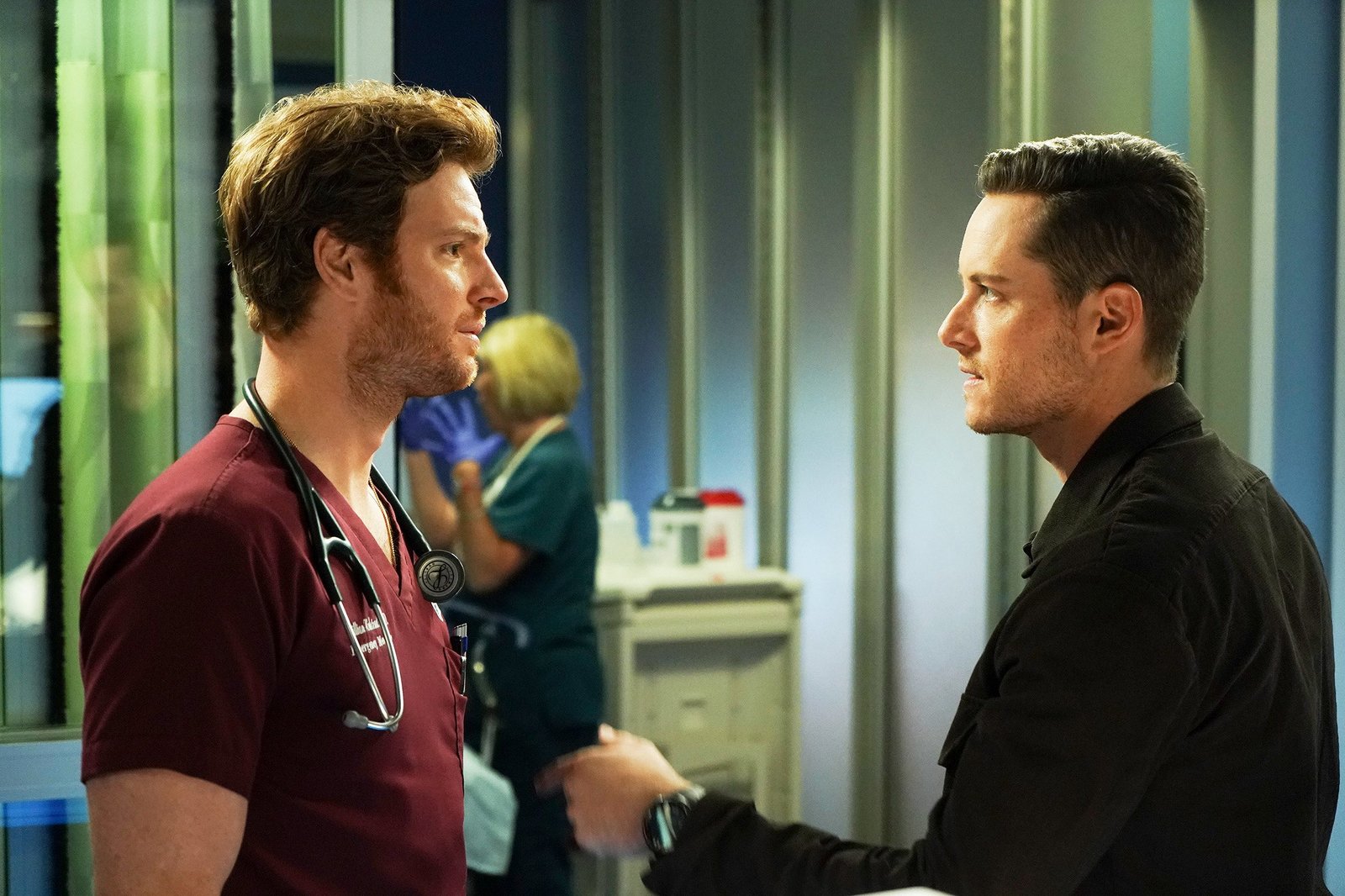 SchicksalsschlägeChicago Med Schicksalsschläge - Saints Staffel 1, Episode 7 Die Brüder diskutieren einen Fall: Nick Gehlfuss als Dr. Will Halstead, Jesse Lee Soffer als Jay Halstead (Copyright SRF/NBC Universal)Bild: © 2015 NBCUniversal Media, LLC