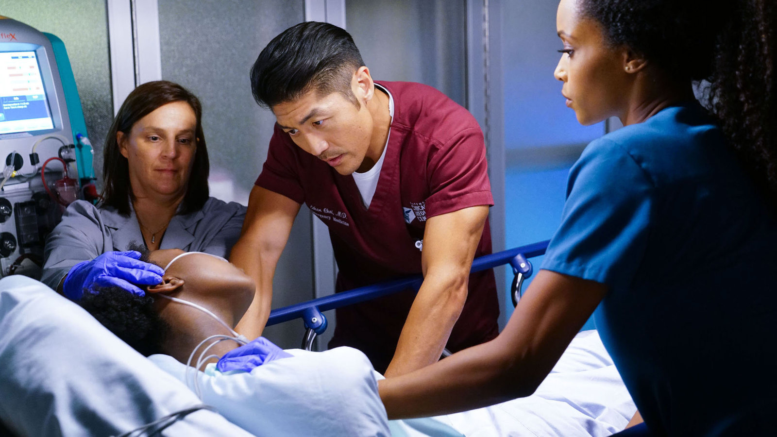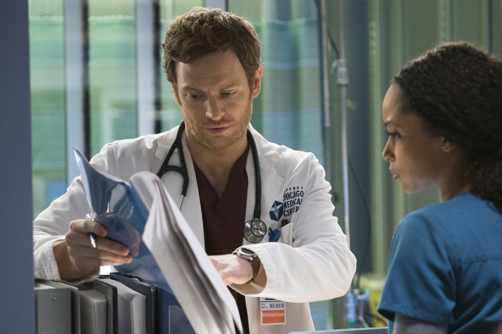 AlohaChicago Med, Aloha Staffel 4 Folge 22 Marlyne Barrett als Maggie Lockwood (von hinten), Nick Gehlfuss als Dr. Will Halstead. SRF/NBC UniversalBild: © SRF2