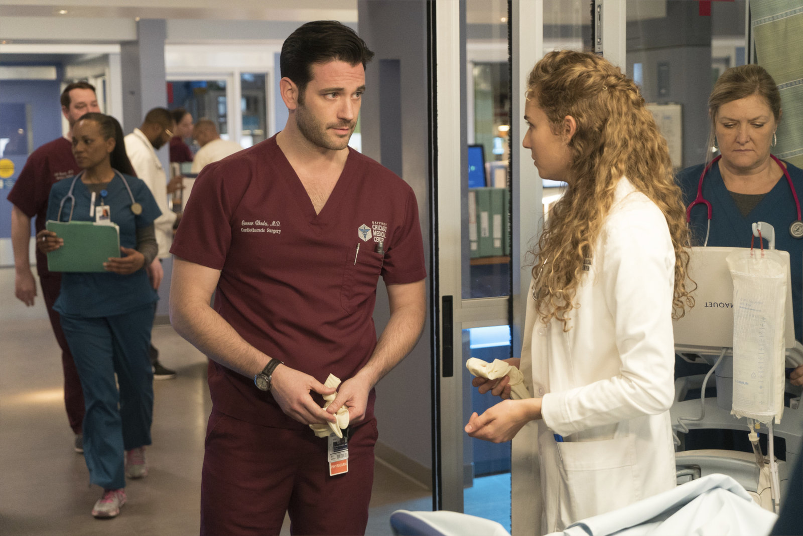 Code OrangeChicago Med, Code Orange Staffel 4 Folge 7 Sie hat einen Mann gerettet: Colin Donnell als Dr. Connor Rhodes (von hinten), Norma Kuhling als Ava Bekker. Copyright: SRF/NBC UniversalBild: © SRF/NBC Universal
