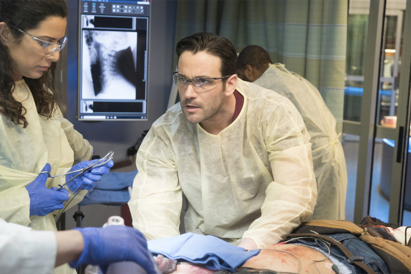 VerdachtChicago Med Verdacht - Hearts Staffel 1, Episode 14 Er versucht mit dem schwer verletzten Mädchen zu reden: Colin Donnell als Dr. Connor RhodesBild: © SRF