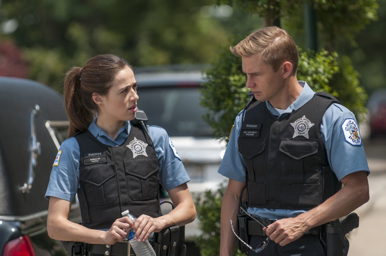 Der FallenstellerVertrautes Gespräch: Patrick John Flueger als Adam Ruzek, Amy Morton als Trudy PlattBild: © SRF/2014 Universal Television LLC.